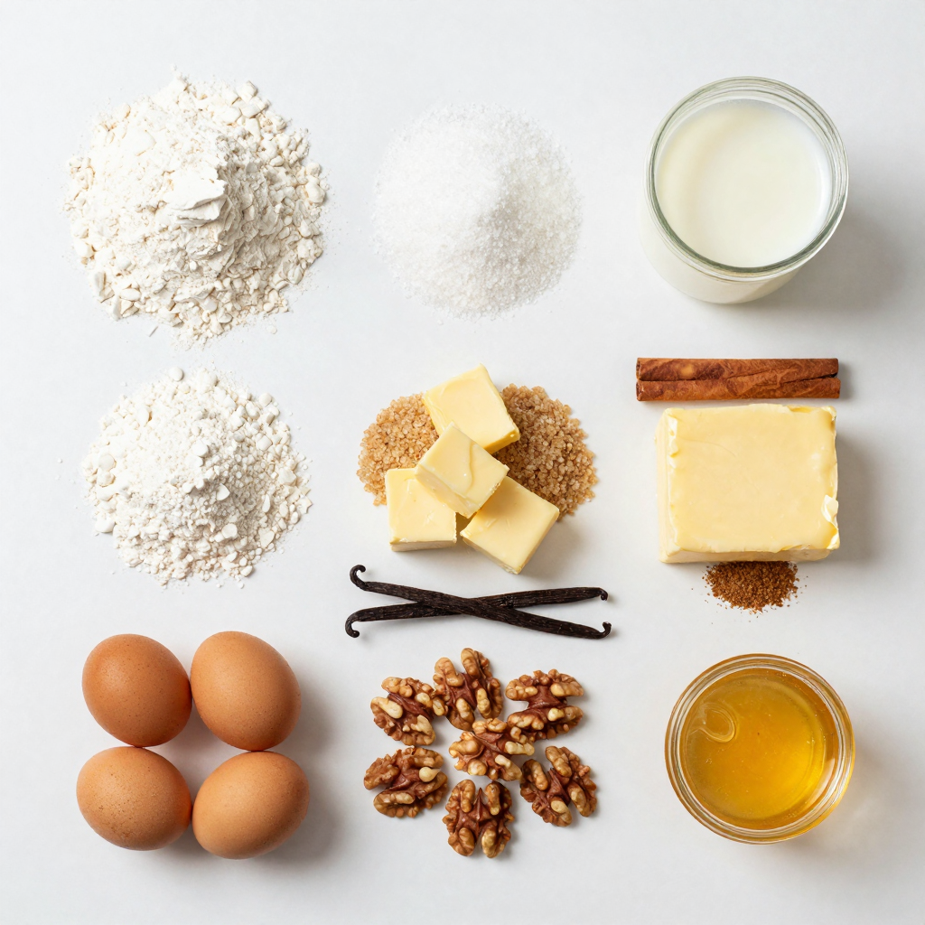 Gathering the right ingredients is key for bakery-style honey walnut streusel muffins. Start with dry ingredients. You’ll need flour, sugar, baking powder, baking soda, and salt. These form the base of your muffins.