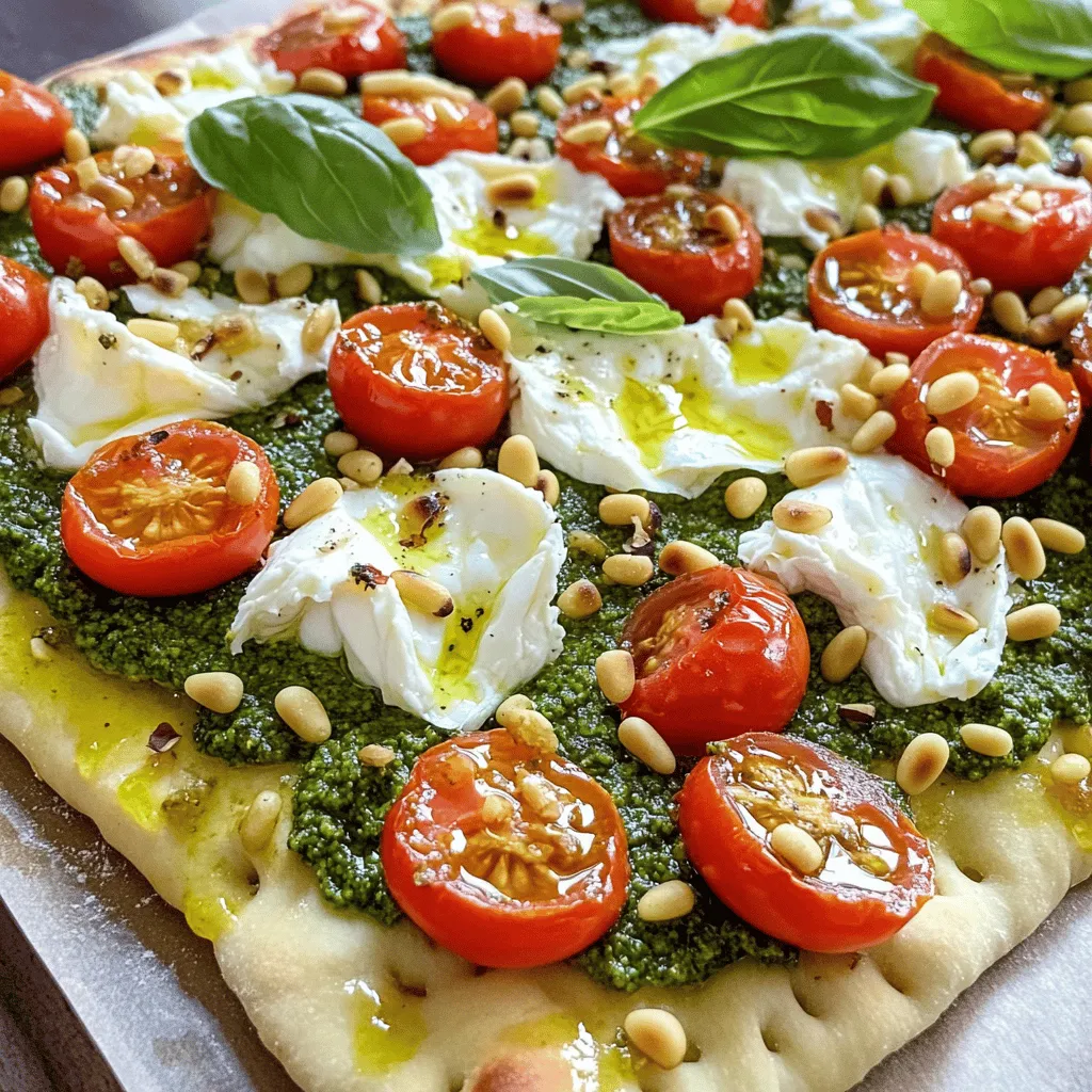 These main ingredients create a tasty base for the flatbread. The pre-made flatbread or pizza dough saves time and gives you a nice crust. Fresh basil pesto adds a bright flavor. Burrata cheese is rich and creamy, making every bite special.