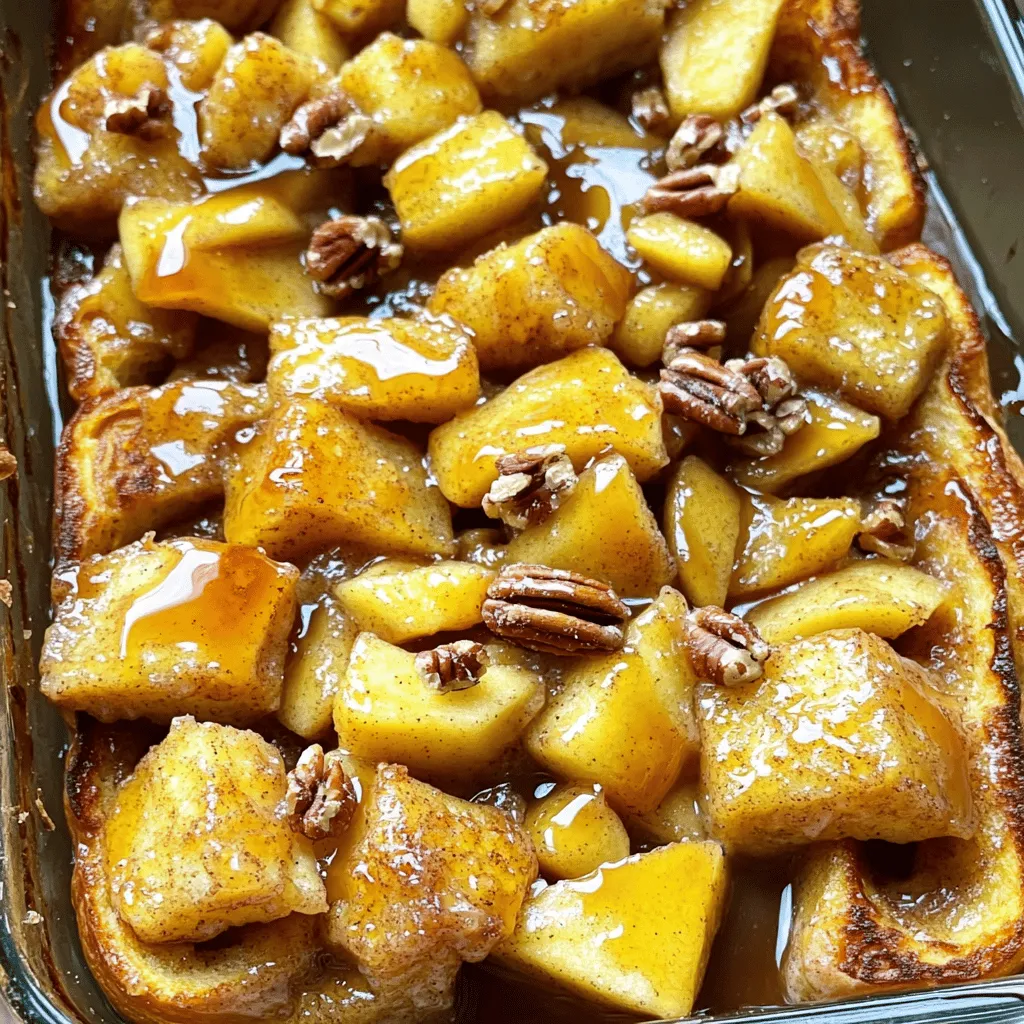 - 8 slices of day-old brioche or challah bread - 3 medium apples (peeled, cored, and diced) - 4 large eggs - 2 cups milk - 1 cup heavy cream - 1/2 cup brown sugar - 1 teaspoon vanilla extract - 1 teaspoon ground cinnamon - 1/4 teaspoon nutmeg - 1/4 teaspoon salt - 1/2 cup caramel sauce - Chopped pecans or walnuts for topping To create the perfect Caramel Apple Cinnamon French Toast Casserole, gather these key ingredients. Start with 8 slices of day-old brioche or challah bread. Using day-old bread is important. It soaks up the custard mix well without getting too soggy. Next, you need 3 medium apples. Peel, core, and dice them for great texture. You’ll also use 4 large eggs. These give the casserole its rich, custardy base. For creaminess, add 2 cups of milk and 1 cup of heavy cream. This mix makes every bite delightful. For sweetness, use 1/2 cup of brown sugar. It adds a deep, rich flavor. You’ll need 1 teaspoon of vanilla extract to enhance the taste. Ground cinnamon is a must, so add 1 teaspoon. It gives that warm spice we love in French toast. A pinch of nutmeg and 1/4 teaspoon of salt rounds out the flavors nicely. Finally, make it special with optional ingredients. Drizzle 1/2 cup of caramel sauce over the top. It adds a sweet and sticky finish. You can also sprinkle chopped pecans or walnuts for a crunchy topping. Each ingredient plays a role in this tasty dish. With these items, you’re on your way to a delicious breakfast treat that everyone will love. - Preheat the oven to 350°F (175°C). - Grease a 9x13-inch baking dish with butter or non-stick spray. - Place cubed bread evenly in the prepared baking dish. - In a medium skillet, sauté diced apples with half of the brown sugar and a pinch of cinnamon until tender, about 5-7 minutes. - In a large bowl, whisk together the eggs, milk, cream, remaining brown sugar, vanilla extract, cinnamon, nutmeg, and salt until smooth. - Pour the egg mixture evenly over the bread cubes, pressing down gently to soak each piece. - Sprinkle the sautéed apples on top and drizzle with caramel sauce. - For best results, chill the casserole for at least 30 minutes before baking. - Bake in the preheated oven for 35-40 minutes, or until golden brown on top and set in the middle. - Use day-old brioche for the best soak. - Challah is a great second choice. - You can also use other bread types like sourdough. - Soak the bread for at least 30 minutes. - If you soak too long, the bread may turn soggy. - Press down gently to help the bread absorb the egg mix. - Top with whipped cream for a creamy finish. - Greek yogurt adds a nice tang. - Try adding fresh fruit or nuts for extra crunch. {{image_2}} You can change the fruits in this dish. Try using pears for a sweet twist. Berries can add a burst of flavor, too. For spice lovers, add ginger or cardamom. These spices give a warm kick that pairs well with apples. Mix and match until you find your favorite blend! If you need gluten-free options, use gluten-free bread. Many brands make tasty bread that works well here. For vegan diets, swap eggs with flaxseed or chia seeds. Use almond or oat milk in place of regular milk. You can also use coconut cream instead of heavy cream. These swaps make this dish fit for everyone! Think about how you want to serve this treat. You can bake it in a big dish or use individual ramekins. Ramekins make for pretty servings at brunch. You can also switch up the time of day. Serve this as a sweet breakfast or a dessert. It fits both roles perfectly! To keep your caramel apple cinnamon French toast casserole fresh, store it in the fridge. Place it in an airtight container. It will last for up to 3 days. If you want to keep it longer, freezing is a good option. You can freeze the casserole before or after baking. If freezing before, cover it tightly with plastic wrap. You can also use aluminum foil for extra protection. If freezing after baking, let it cool completely first. It can stay in the freezer for up to 2 months. To thaw, move it to the fridge overnight. When you are ready to eat, reheat it in the oven. Preheat your oven to 350°F (175°C). Cover the casserole with foil to keep it moist. Heat for about 20-25 minutes or until warmed through. This method helps keep the texture nice. You can also use the microwave, but it may make it a bit soggy. Yes, you can make this dish ahead of time. Here are some tips for prepping in advance: - Prepare the casserole the night before. - Cover it tightly and store it in the fridge. - Bake it in the morning for a fresh breakfast. Use sweet and tart apples for great flavor. Here are some good suggestions: - Granny Smith for tartness. - Honeycrisp for sweetness. - Fuji for balance. Yes, you can use non-dairy ingredients. Here are some options: - Almond milk or oat milk as milk substitutes. - Coconut cream in place of heavy cream. - Flax eggs or chia seeds can replace eggs. You can adjust the sugar levels easily. Here’s how: - Add more brown sugar for sweetness. - Reduce the brown sugar for less sweetness. - Use maple syrup as an alternative sweetener. This blog post covered how to make a delicious apple bread pudding casserole. We discussed the main ingredients, like brioche and apples, and how to prepare them. You learned step-by-step instructions, plus tips for texture and serving. We explored variations, storage options, and answered common questions about the recipe. In conclusion, this dish is easy to customize and perfect for any meal. Enjoy sharing this tasty treat with family and friends!