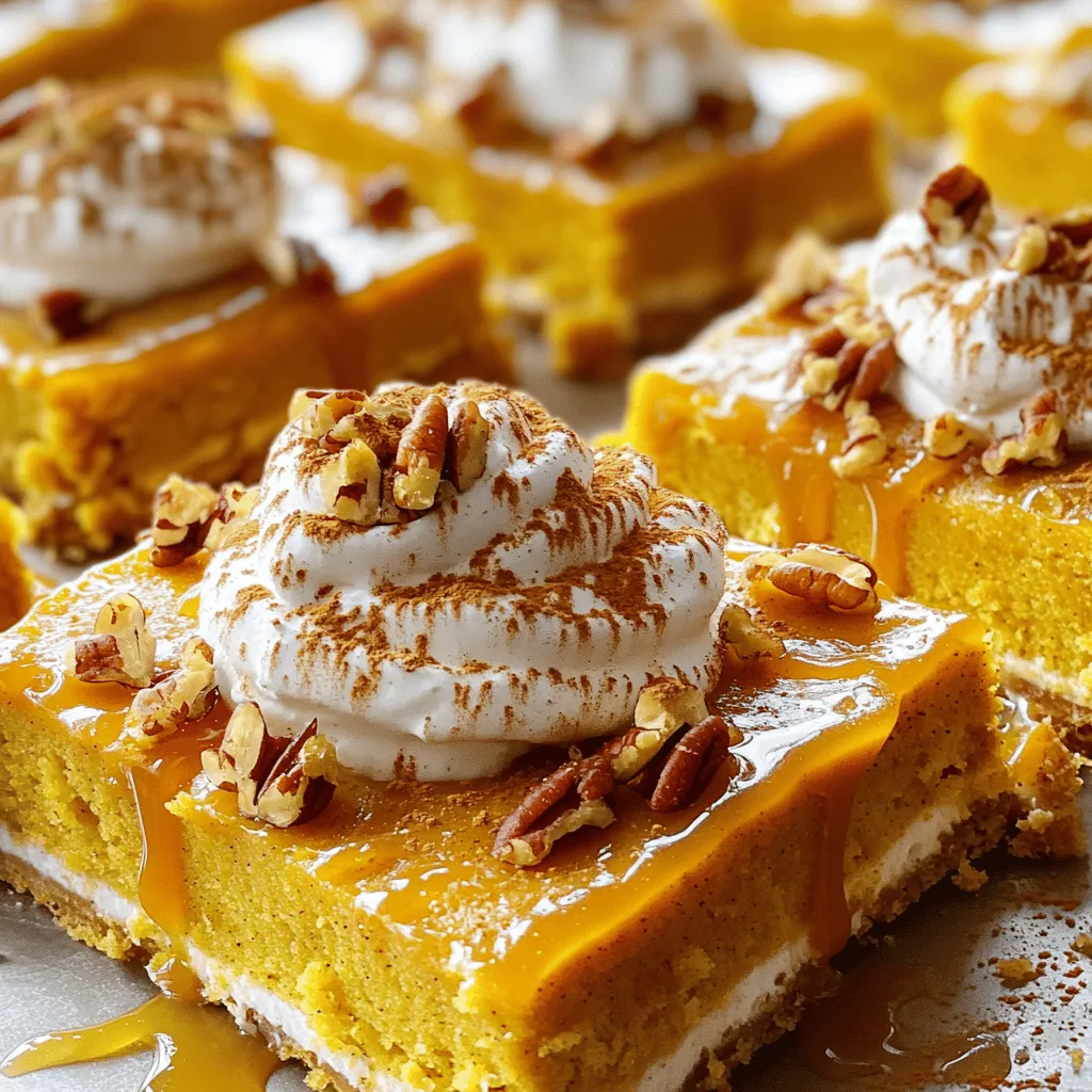 ![- 1 box yellow cake mix - 1 cup canned pumpkin puree - 1 cup milk - 3 large eggs - 1 tablespoon pumpkin pie spice - 1 teaspoon vanilla extract - 1 cup caramel sauce (divided) - 1 cup whipped topping - 1/2 cup chopped pecans (optional) - Additional pumpkin pie spice for garnish The ingredients for this caramel pumpkin poke cake are simple yet full of flavor. The yellow cake mix gives a light base. The pumpkin puree adds moisture and a rich taste. Milk helps keep the cake soft. Eggs bind everything together, while pumpkin pie spice brings warmth and sweetness. Caramel sauce is key for that gooey poke effect. Whipped topping adds a creamy layer. Chopped pecans offer a nice crunch, but they're optional. You can also sprinkle more pumpkin pie spice for a lovely finish. You can switch the cake mix for any flavor you like. Chocolate or spice cake mixes work well, too. If you're dairy-free, use almond or soy milk instead of regular milk. If you can't find pumpkin puree, try using applesauce or mashed bananas. Each option gives a different twist to the cake. Feel free to mix and match to find your favorite! For more detailed steps on how to create this delightful dessert, check the Full Recipe. 1. First, preheat your oven to 350°F (175°C). This temperature is key for a moist cake. 2. Next, grease and flour a 9x13-inch baking pan. This step helps the cake release easily. 3. In a large mixing bowl, combine the yellow cake mix, pumpkin puree, milk, eggs, pumpkin pie spice, and vanilla extract. 4. Mix on medium speed until everything is smooth, about 2 minutes. This makes the batter light and fluffy. 5. Pour the batter into your prepared pan. Smooth the top with a spatula to even it out. 1. Place the cake in the preheated oven. Bake for 25-30 minutes. 2. Check for doneness by inserting a toothpick into the center. It should come out clean. If not, bake for a few more minutes. 1. After baking, let the cake cool in the pan for about 10 minutes. This helps it set. 2. Use the handle of a wooden spoon or a fork to poke holes all over the cake, about 1 inch apart. 3. Pour half of the caramel sauce evenly over the cake. This allows the cake to soak up that sweet flavor. 4. Allow the cake to cool completely on a wire rack for at least 1 hour. This step is crucial for the best taste. For the full recipe, you can refer to the earlier sections. Enjoy the process of making this delightful caramel pumpkin poke cake! To make the best poke cake, the holes matter. Use the handle of a wooden spoon or a fork to poke holes. Aim for about 1 inch apart. This helps the caramel soak in well. Poking too few holes means less caramel flavor in each bite. Next, pour the caramel sauce slowly. Start at one side and move across. This way, the sauce spreads evenly. It will seep into the holes better, giving you a moist cake. If you rush, some parts may miss out on that delicious caramel. When it's time to serve, presentation is key. Cut the cake into squares. Place each piece on a nice dessert plate. Drizzle extra caramel on top for a tasty look. If you like, sprinkle chopped pecans on each slice. This adds a nice crunch and a pop of flavor. Pair your cake with a warm drink. A cup of spiced apple cider or coffee works great. These drinks balance the sweetness of the cake. They make for a cozy fall treat. One common mistake is overmixing the batter. Mix just until the ingredients blend. Overmixing can make the cake dense. We want it light and fluffy. Another mistake? Not poking enough holes. If you skip this step, the caramel won't soak in well. You'll miss out on that sweet, gooey goodness. Make sure to poke holes all over for the best flavor. For the full recipe, check the [Full Recipe]. {{image_2}} You can easily change the taste of your cake. Adding chocolate chips gives a rich twist. The chocolate melts and mixes well with the pumpkin flavor. You can use dark or milk chocolate, depending on your taste. Another great option is to switch up the spices. Instead of just pumpkin pie spice, try cinnamon or nutmeg. You can even mix in a pinch of ginger for extra warmth. If you want a gluten-free cake, use a gluten-free cake mix. Many brands offer great options that taste fantastic. Just check the label to ensure it’s truly gluten-free. For a vegan version, substitute the eggs and milk. Use flax eggs and almond milk or oat milk instead. This way, everyone can enjoy this treat. Using fresh pumpkin can enhance the flavor. You can roast a pumpkin, scoop it out, and mash it. This gives a rich taste that canned pumpkin may lack. You can also add seasonal fruits like apples or pears. They add natural sweetness and a nice texture to the cake. These swaps make your cake even more special for fall gatherings. To keep your Caramel Pumpkin Poke Cake fresh, store it in the fridge. Use an airtight container to prevent drying out. If you have leftovers, you can also freeze it. Wrap the cake tightly in plastic wrap, then place it in a freezer bag. This helps keep it moist. In the fridge, this cake lasts about 4 to 5 days. Always check for signs of spoilage. If you see mold, or if the cake smells off, it's best to toss it. A dry texture is also a sign that it has gone bad. To reheat your poke cake, use the microwave for best results. Heat it in short bursts of about 10-15 seconds. This warms the cake without making it soggy. If you prefer the oven, set it to 350°F (175°C). Place the cake in for about 10 minutes. Keep an eye on it to avoid sogginess. Enjoy your delicious cake warm! For the full recipe, check the link above. Making this cake is easy. It takes about 20 minutes to prep. You bake it for 25 to 30 minutes. After baking, let it cool for an hour. So, the total time is about 2 hours. Yes, you can use homemade caramel sauce. To make it, melt sugar in a pot until it turns golden. Slowly add cream and stir until smooth. Use this warm sauce to soak into the cake. It adds a rich flavor! Yes, you can freeze this poke cake. Wrap it tightly in