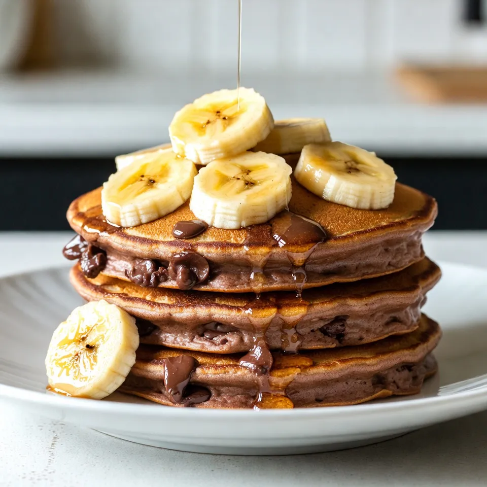 Stack pancakes high on a plate for a great look. Drizzle with maple syrup for sweetness. Add banana slices and a sprinkle of extra chocolate chips on top. This makes each bite even more delicious!