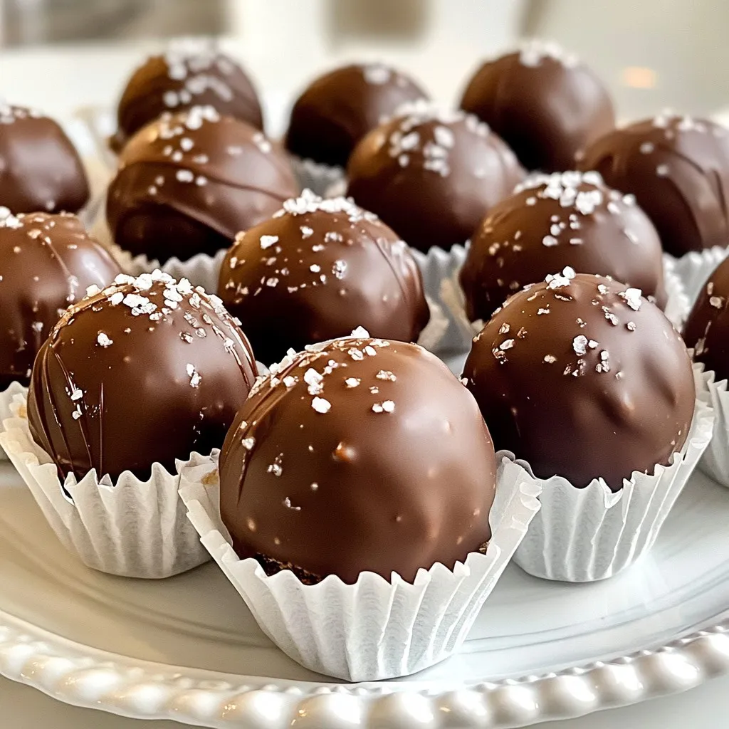 • Return the dipped truffles to the baking sheet. Before the chocolate sets, sprinkle lightly with sea salt for a delightful contrast.