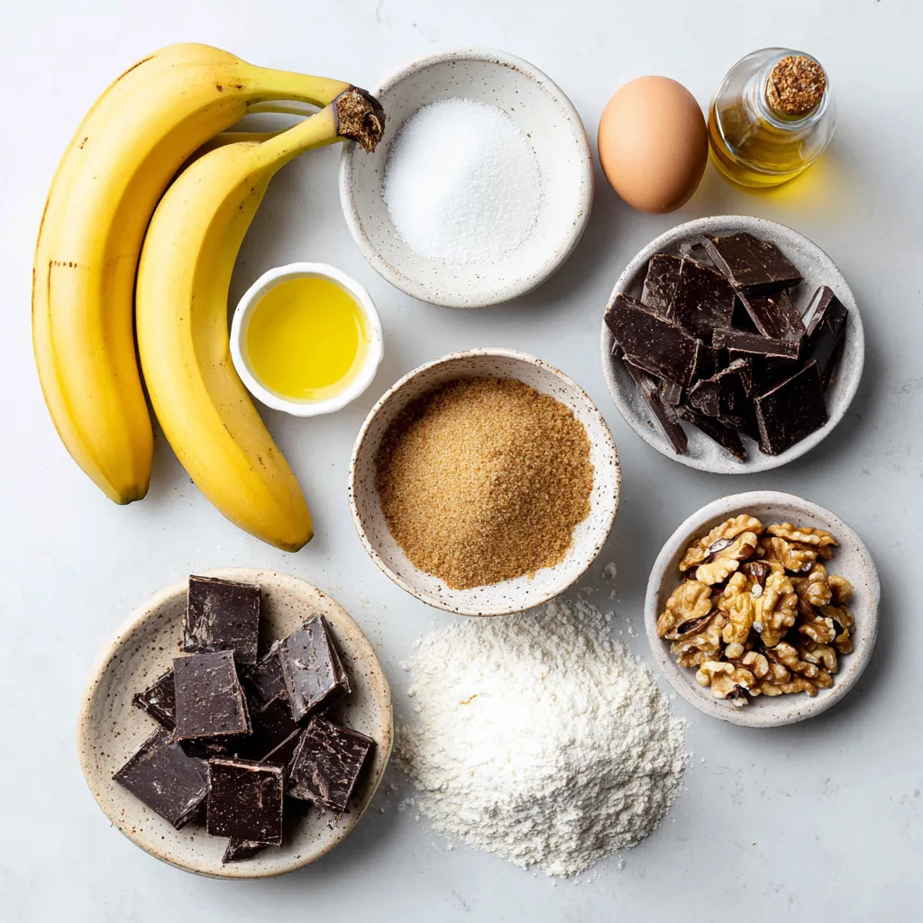 List of Ingredients for Chocolate Chunk Banana Muffins