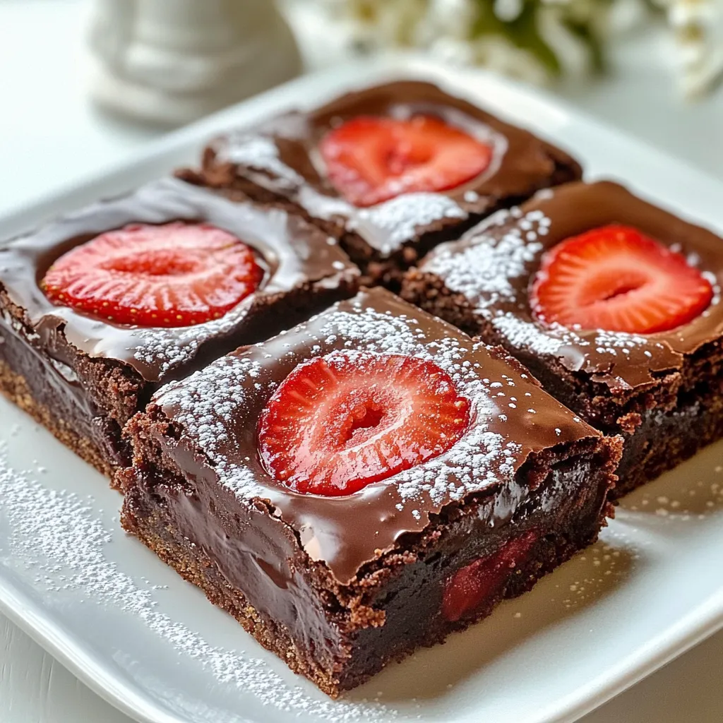 - Visual Appeal: The stunning chocolate glaze and vibrant strawberries on top make these brownies as beautiful as they are delicious.