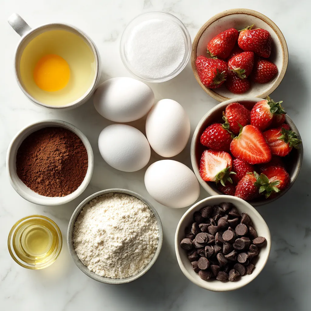 These ingredients create a rich brownie base with fresh strawberries. The butter gives moisture, while the cocoa provides that deep chocolate flavor.