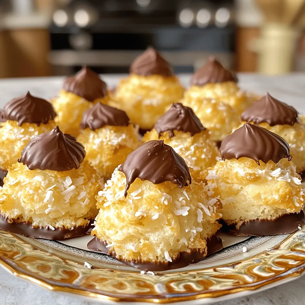 Decorating your macaroons can be fun! After dipping them in chocolate, sprinkle some colorful sprinkles on top. You can also drizzle white chocolate over the dark chocolate for a pretty look. For a crunchy touch, roll the sides in chopped nuts or colorful coconut flakes. Arrange your macaroons on a decorative plate for a stunning display. A few extra coconut flakes around them adds a nice touch too!