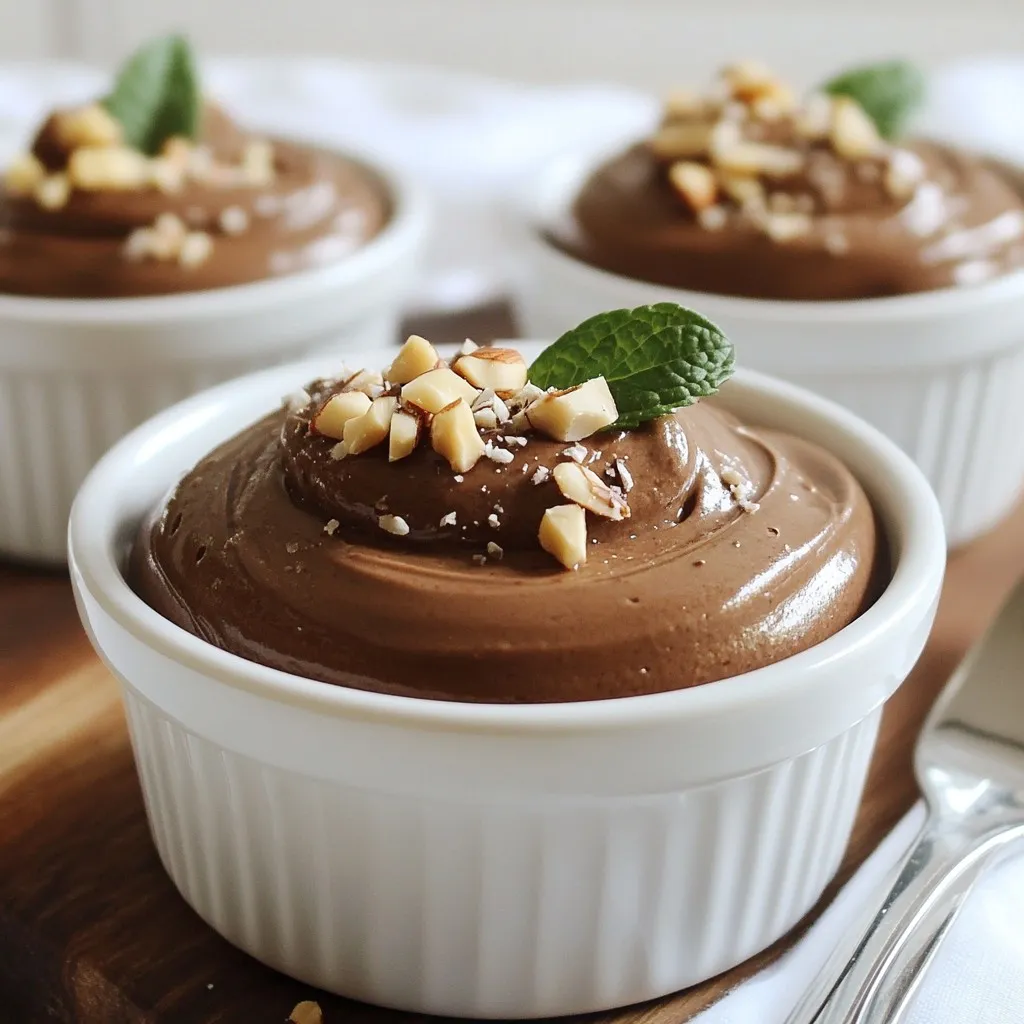 For a stunning look, serve the mousse in clear cups. This way, people see the rich layers. Add crushed hazelnuts on top for crunch. You can also use fresh mint leaves to add color. Another fun idea is to drizzle some hazelnut spread on top. It adds a nice touch and extra flavor. You could even layer the mousse with whipped cream for a special twist.