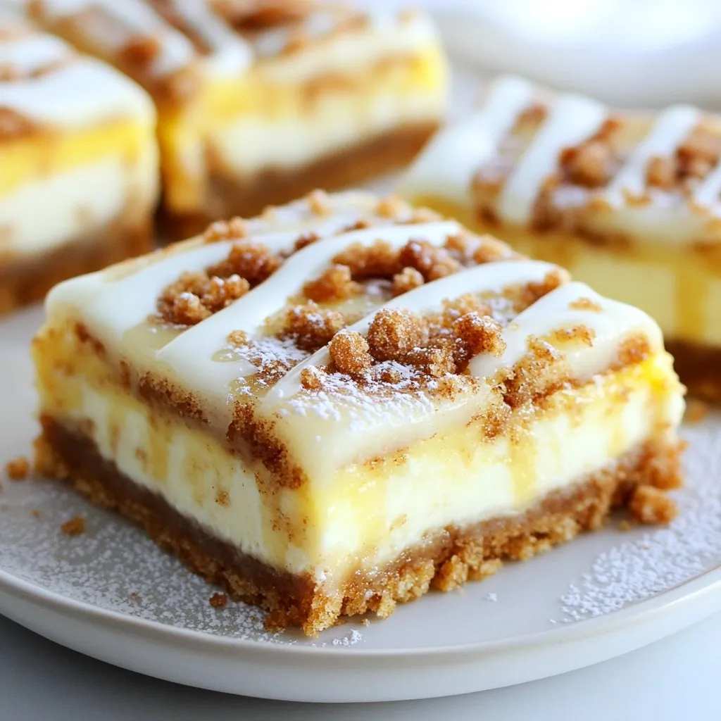 Serve these bars chilled for the best taste. Add a sprinkle of ground cinnamon on top. You can also garnish with mini cinnamon rolls. For a fun touch, pair them with fresh fruit like berries. This adds color and freshness. Enjoy them with coffee or tea for a delightful treat!