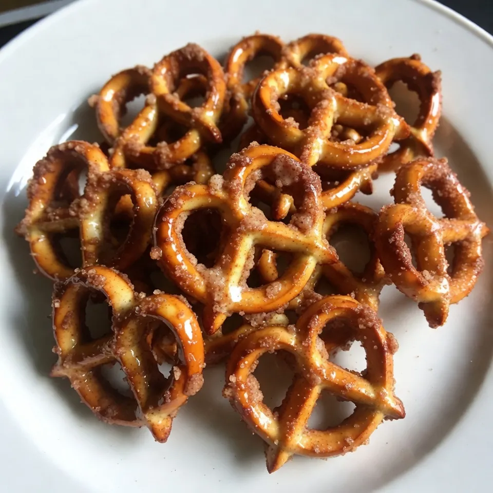 Delicious bite-sized pretzels coated in cinnamon sugar.