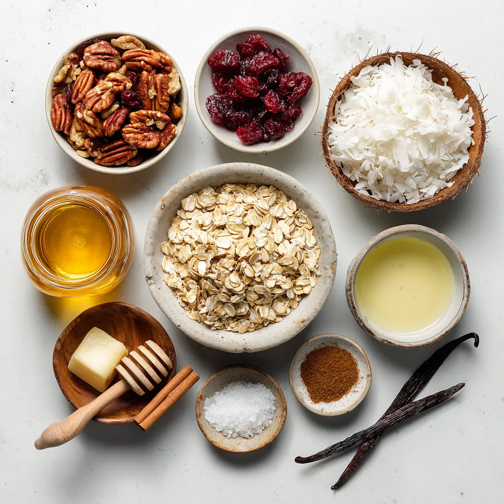Gather these ingredients to create a tasty and crunchy snack. Enjoy the process of making your own granola!
