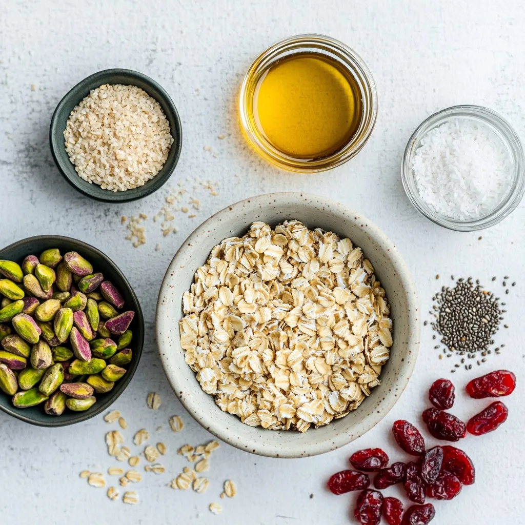 Each ingredient plays a key role in flavor and texture. The rolled oats form the base and give you that hearty crunch. The pistachios add a nice nutty taste, while the dried cranberries offer sweetness and a chewy bite. Honey or maple syrup acts as a natural sweetener, enhancing the flavors without being overpowering.