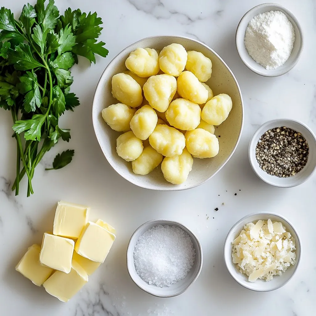 These ingredients create a rich and flavorful dish. The potato gnocchi gives a soft base. The garlic adds aroma and taste. The Parmesan cheese makes it creamy and cheesy.