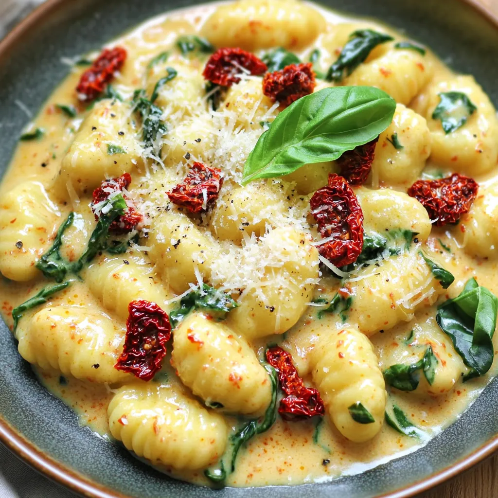 Gather these ingredients before you start cooking. This will make your process smooth and fun. Gnocchi is a soft pasta made from potatoes, and it shines in this creamy dish. Sun-dried tomatoes add a tangy punch that pairs well with the cream. The heavy cream gives the dish its rich texture, while fresh spinach adds a pop of color and nutrients.