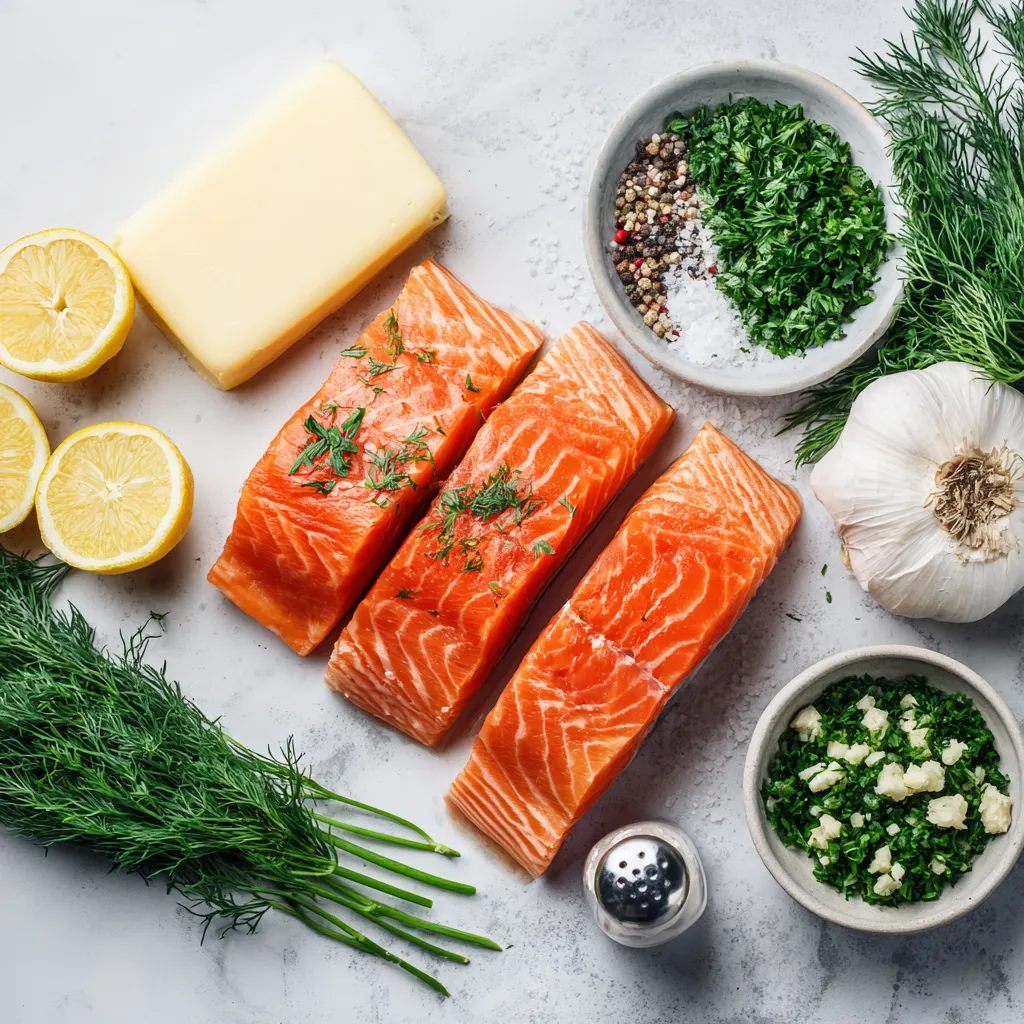 To make garlic butter herb salmon, you need fresh ingredients. Start with salmon fillets. I prefer wild-caught salmon for the best flavor. The unsalted butter adds richness and helps the garlic shine. I use 4 cloves of garlic. Minced garlic gives a strong taste. Fresh herbs like parsley and dill add brightness. Lemon juice gives a lovely tang. Seasoning with salt and black pepper enhances all the flavors.