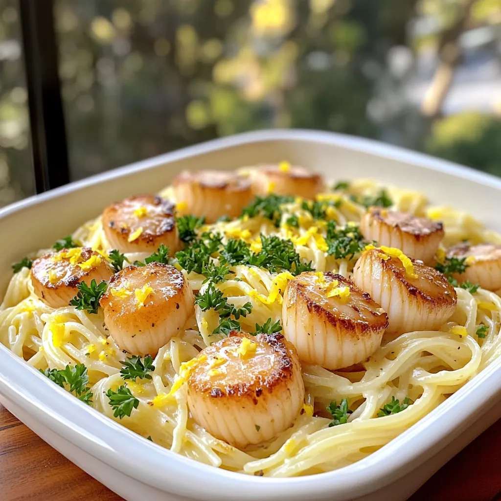 For a vegetarian twist, skip the scallops. Replace them with sautéed mushrooms for a meaty texture. Zucchini noodles can also be a fun base instead of pasta. You can add chickpeas for protein and a hearty feel. Toss in seasonal veggies like asparagus or spinach for freshness. Use vegetable broth instead of chicken broth for a full flavor.