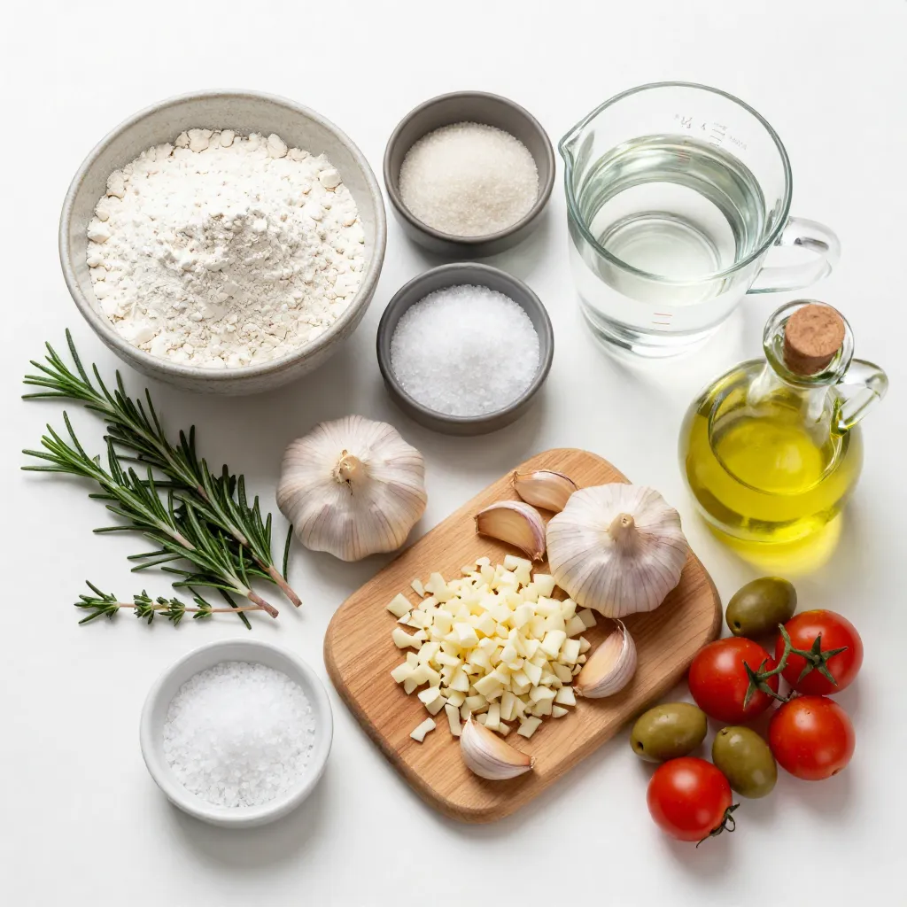 To make a great focaccia, you need some key ingredients. All-purpose flour gives the bread its structure. Instant yeast helps it rise quickly. Salt adds flavor, while sugar helps the yeast work better.