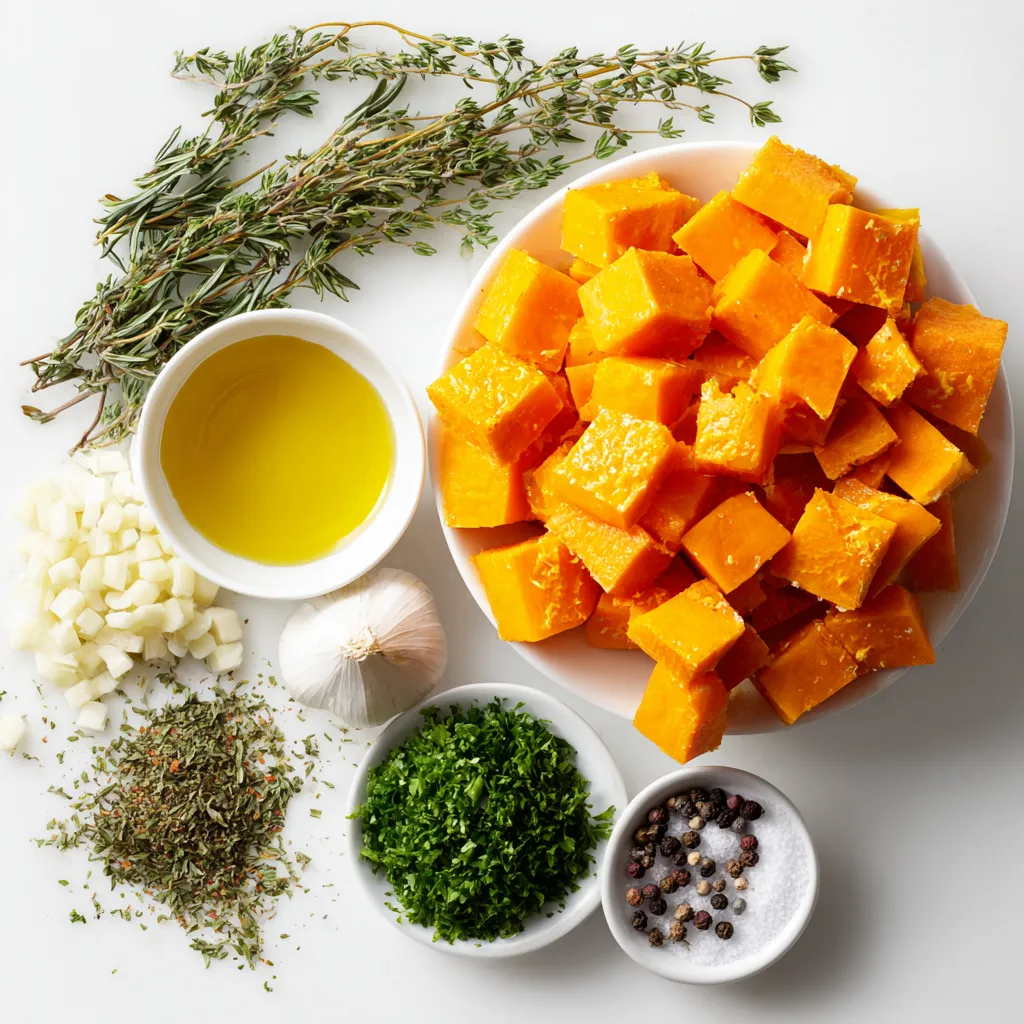 To make Garlic Herb Roasted Pumpkin, gather these simple ingredients: