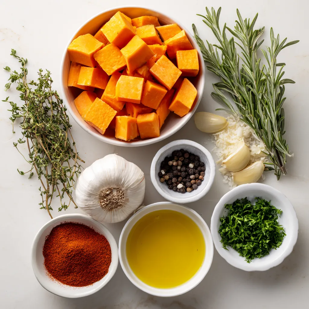 To make garlic herb roasted sweet potatoes, you need simple and fresh ingredients. Sweet potatoes are the star of this dish. They bring natural sweetness and a lovely texture. Garlic adds a strong, savory note that pairs well with sweet potatoes. Use minced garlic for the best flavor.