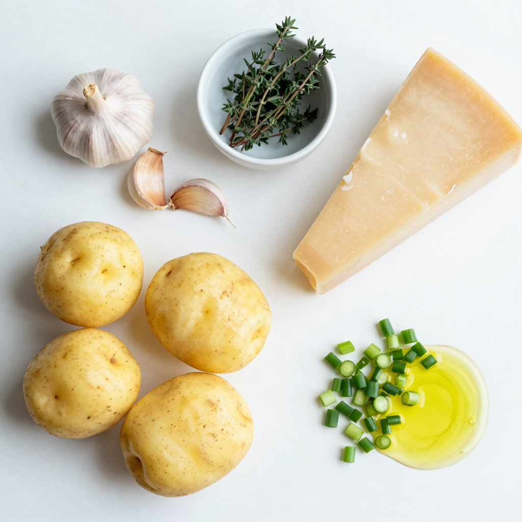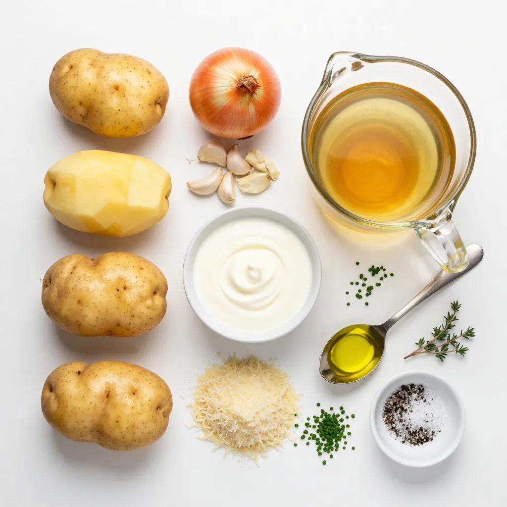 Each ingredient has a specific role in the soup. The potatoes give it body and creaminess. The onion and garlic add depth of flavor. The vegetable broth forms the soup base. The heavy cream makes it rich. Parmesan cheese brings a sharp, salty taste. Olive oil helps sauté the onion, while thyme adds a herbal note. Adjust salt and pepper according to your taste.