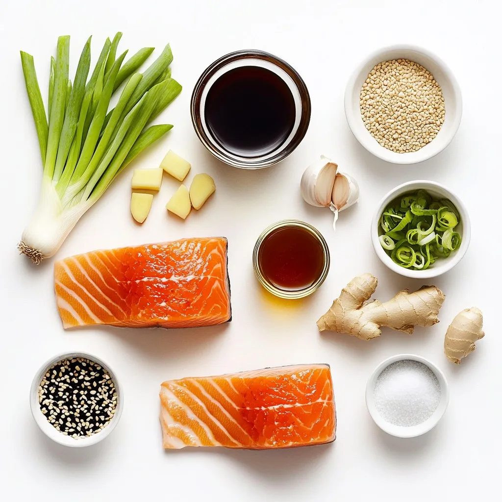 When I create ginger soy glazed salmon, I start with the main ingredients. The salmon fillets are the star here. They should weigh about 6 ounces each for even cooking. I use low sodium soy sauce. This keeps the dish flavorful without being too salty. Fresh ginger adds a bright kick. Grating it gives the best flavor. I like to use honey or maple syrup for sweetness. It balances the salty soy sauce.