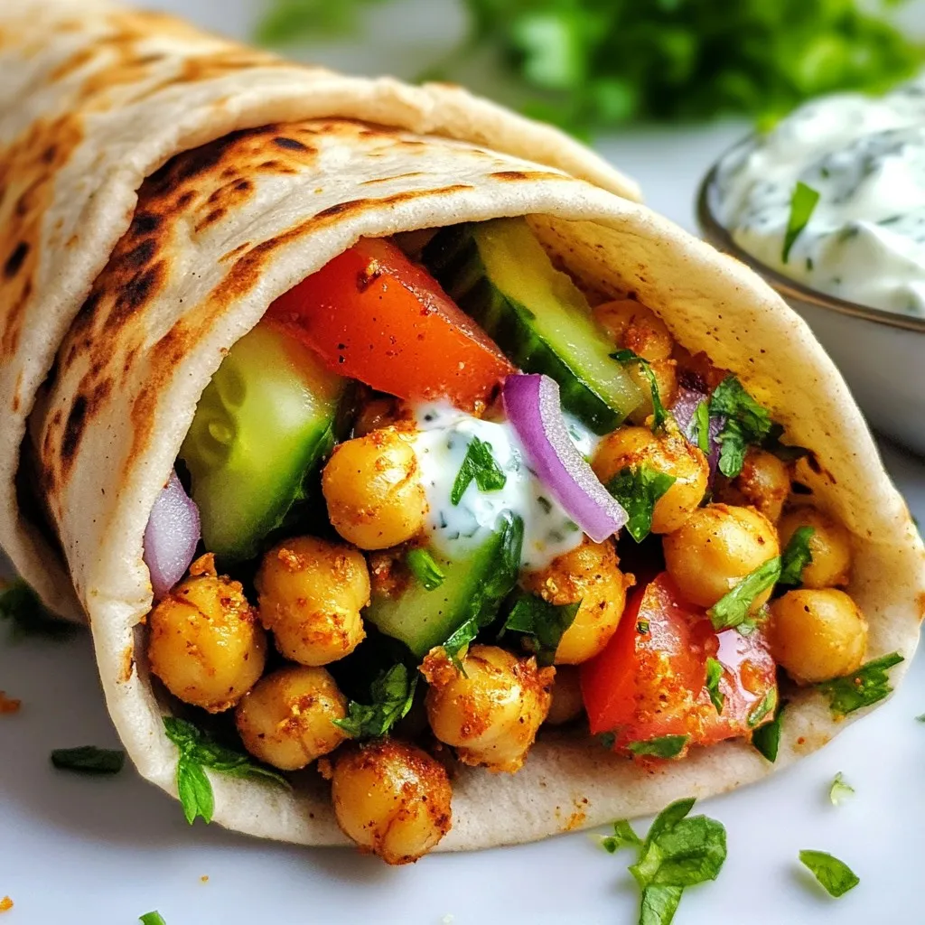 A delicious and healthy vegan twist on traditional gyros, featuring spiced chickpeas and fresh vegetables wrapped in whole wheat pita.