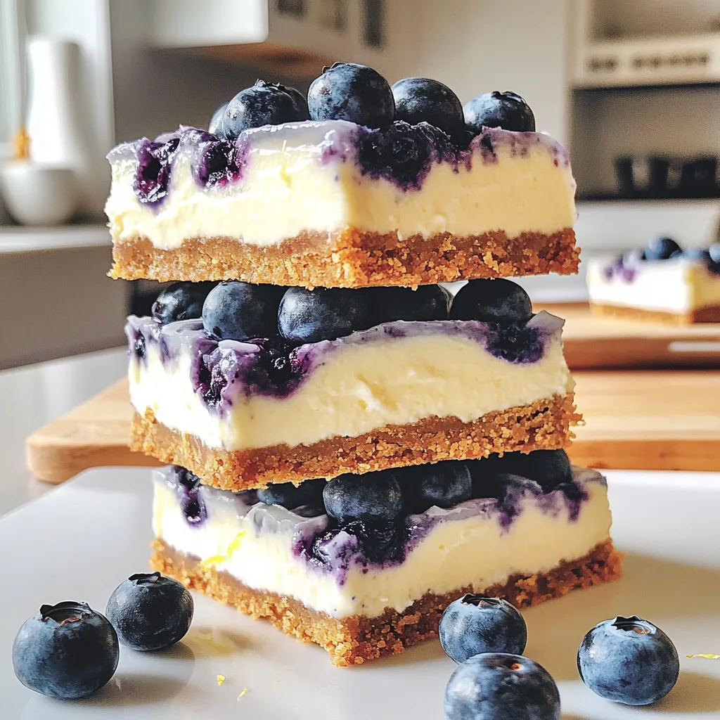 Each ingredient has its purpose. The graham cracker crumbs form a sweet, crunchy crust. The butter helps bind the crumbs together. Sugar sweetens the bars, while Greek yogurt and cream cheese create a creamy filling. Eggs provide structure and stability. Vanilla extract adds a warm flavor, and lemon zest brightens it all up. Fresh blueberries give a juicy burst and color. If you want a thicker filling, add cornstarch.