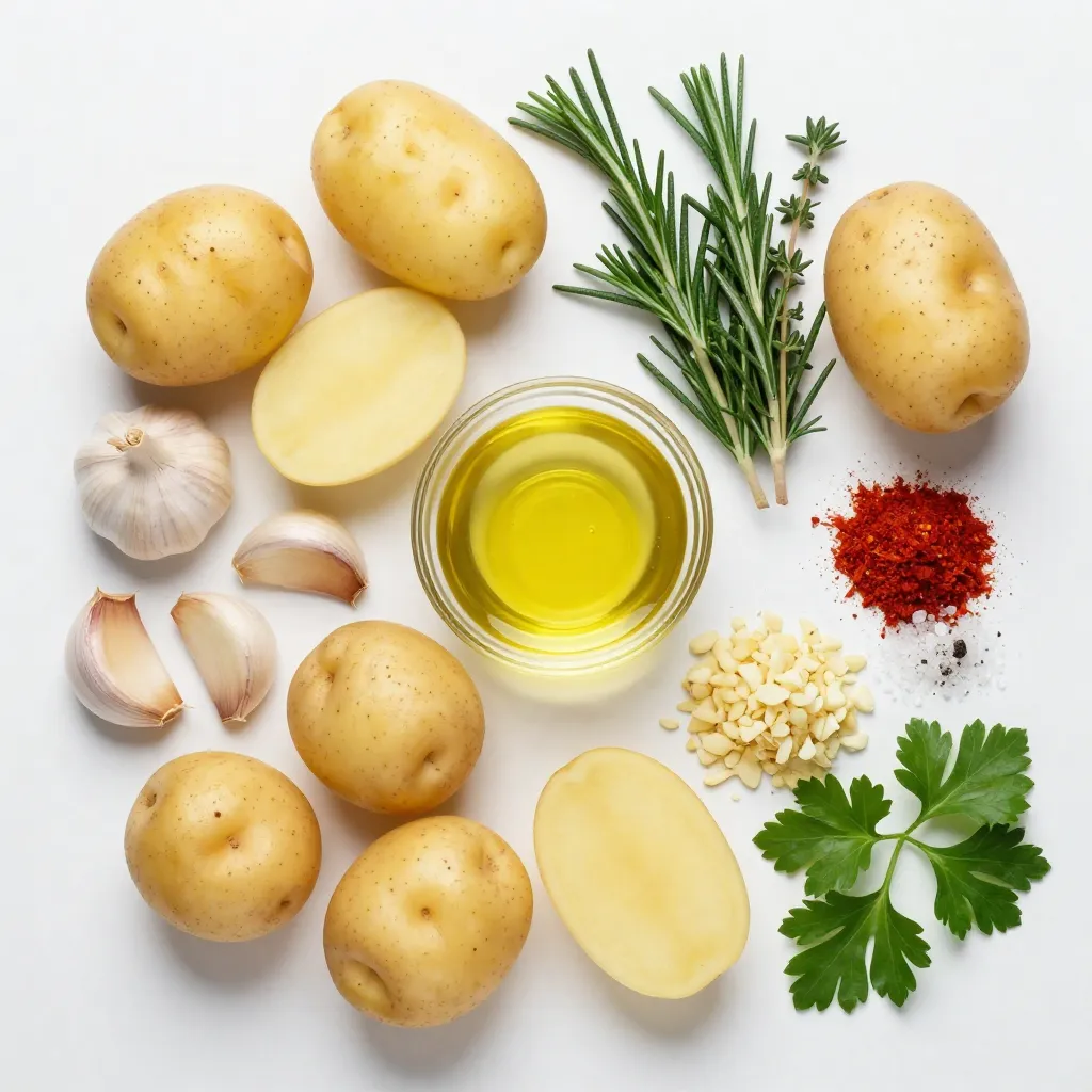 Gathering the right ingredients makes cooking fun and simple. Start with baby potatoes. Their small size means they cook evenly and get crispy. You’ll need about 2 pounds, halved for better roasting.