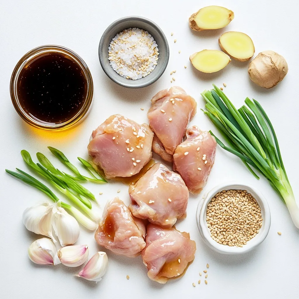 These main ingredients form the base of the dish. Chicken thighs bring a juicy flavor. Honey adds a sweet touch. Soy sauce gives a savory depth. Sesame oil adds a nice nutty hint.