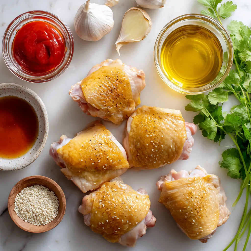 The star of this dish is the chicken thighs. I love using bone-in, skin-on pieces because they stay juicy and have great flavor. The honey and Sriracha sauce create a perfect balance of sweet and spicy. The soy sauce adds depth, while garlic and ginger enhance the taste further. Seasoning with salt and pepper is key to bringing out the flavors.