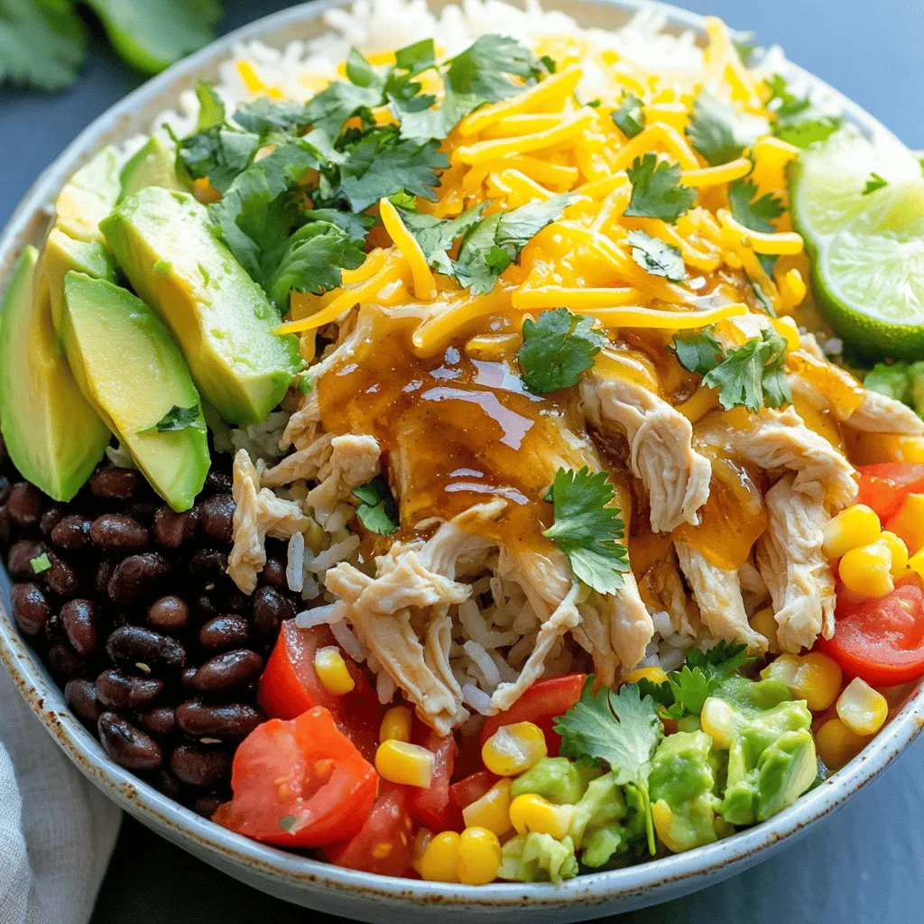 These burrito bowls are perfect for meal prep. You can make them ahead of time for busy days. Divide the bowls into single-serving containers. This way, you have ready meals for lunch or dinner. You can also prep the chicken and rice separately. This allows you to mix and match with other toppings throughout the week.