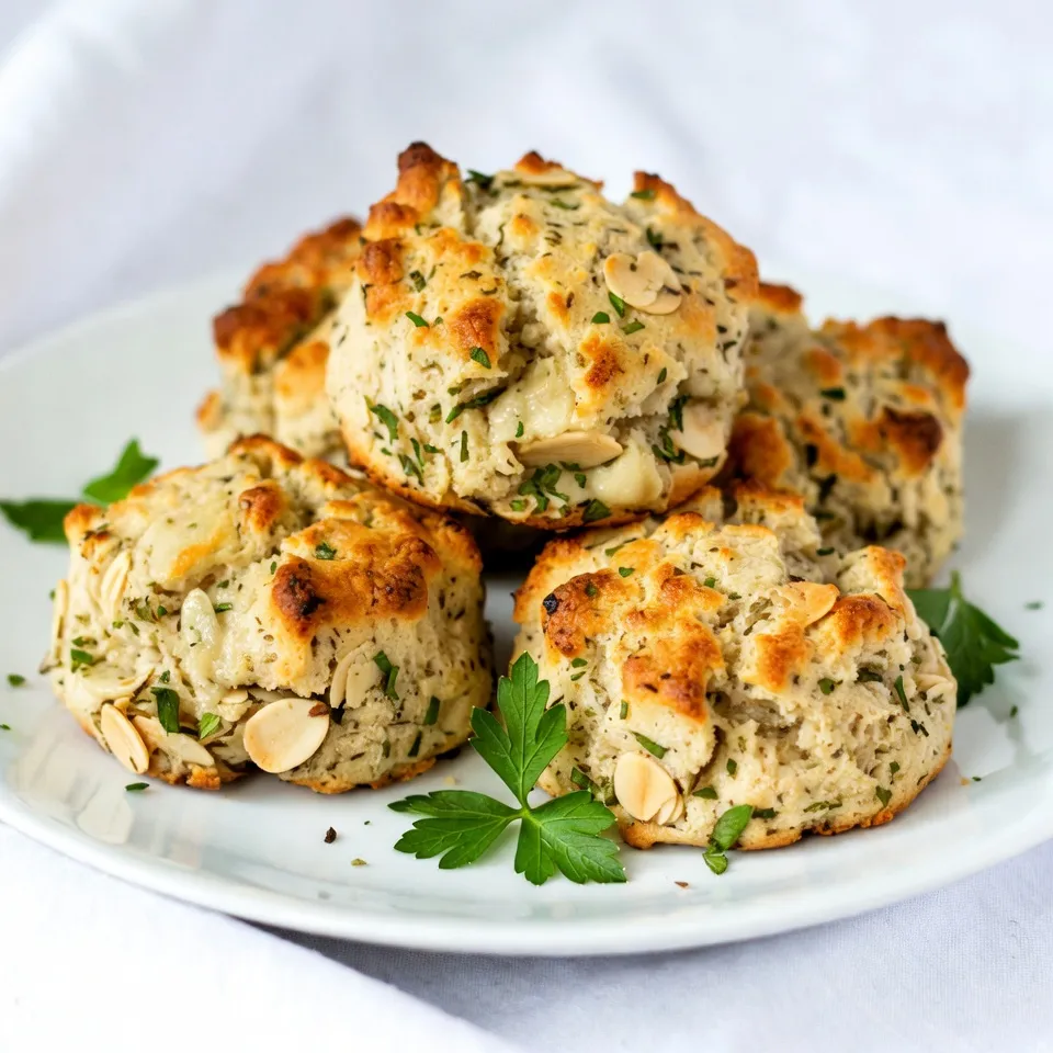 - 2 cups almond flour - 1 tablespoon baking powder - 1 teaspoon garlic powder - 1 teaspoon dried oregano - 1 teaspoon dried thyme - 1/2 teaspoon salt - 1/4 teaspoon black pepper - 1/4 cup unsalted butter, melted - 2 large eggs - 1/2 cup shredded mozzarella cheese - 1 tablespoon fresh parsley, chopped (for garnish) Each ingredient in these biscuits plays a key role. Almond flour is the base and keeps the biscuits low in carbs. It gives a nice texture and nutty flavor. Baking powder helps the biscuits rise and become fluffy. Garlic powder adds a strong, savory taste. Oregano and thyme bring herbal notes that enhance flavor. Salt and pepper balance the taste, making each bite delightful. Unsalted butter adds richness and moisture. Eggs bind the ingredients together and add structure. Mozzarella cheese melts and gives a cheesy pull. Fresh parsley adds a pop of color and fresh taste. If you need a substitute for almond flour, you can use coconut flour. Just remember, coconut flour absorbs more moisture. Use only 1/4 cup for each cup of almond flour. You may need to add more liquid to the mix. Another option is to use sunflower seed flour, which is nut-free. This keeps your biscuits keto-friendly and tasty. Each option brings a different flavor and texture, so choose what suits you best. {{ingredient_image_1}} Start by preheating your oven to 350°F (175°C). This step is key for baking the biscuits evenly. Line a baking sheet with parchment paper. This paper helps the biscuits not stick to the pan. In a large mixing bowl, add the following dry ingredients: - 2 cups almond flour - 1 tablespoon baking powder - 1 teaspoon garlic powder - 1 teaspoon dried oregano - 1 teaspoon dried thyme - 1/2 teaspoon salt - 1/4 teaspoon black pepper Mix these ingredients well. This blend gives the biscuits a great flavor. Make sure there are no lumps in the flour. In a separate bowl, whisk these wet ingredients together: - 1/4 cup unsalted butter, melted - 2 large eggs Mix until they are well combined. Pour this mixture into the bowl with dry ingredients. Stir gently until just combined. Be careful not to overmix. This can make the biscuits tough. Now, add in 1/2 cup shredded mozzarella cheese. Stir until the cheese is evenly mixed into the dough. Using a cookie scoop or your hands, form the dough into small balls. Each ball should be about 1-2 tablespoons. Place them on the prepared baking sheet with space between each biscuit. Bake in the preheated oven for 15-20 minutes. You want them lightly golden on top. Once done, take them out and let them cool slightly. Enjoy your fresh and flavorful Keto Garlic Herb Biscuits! To get that perfect biscuit texture, focus on the mixing. Combine the wet and dry ingredients until just mixed. Overmixing can make the biscuits dense. You want them fluffy and light. Use almond flour for a soft crumb. The mozzarella cheese adds stretch and moisture. If you want a crispier biscuit, bake them a bit longer. Watch them closely to avoid burning. One mistake is not measuring the almond flour correctly. Too much flour can ruin the texture. Always use a kitchen scale for accuracy. Another common error is not preheating the oven. This can lead to uneven baking. Also, don’t skip the parchment paper! It helps with sticking. Finally, be cautious with the baking time. Every oven is different, so check for a golden color. Using the right tools makes baking simpler. A large mixing bowl is key for combining ingredients. A whisk helps mix the wet ingredients well. A cookie scoop ensures uniform biscuit sizes. This keeps baking times even. A baking sheet lined with parchment paper prevents sticking. Lastly, having a kitchen scale is great for accurate measurements. These tools save you time and make clean-up easy. Pro Tips Use Fresh Herbs: For an even more vibrant flavor, consider using fresh herbs instead of dried. Fresh parsley, thyme, and oregano can elevate the taste of your biscuits. Experiment with Cheese: While mozzarella is great, feel free to experiment with other cheeses like cheddar or feta for a different flavor profile in your biscuits. Don’t Overmix: To keep your biscuits fluffy, mix the dough until just combined. Overmixing can lead to dense biscuits. Storage Tips: These biscuits can be stored in an airtight container in the fridge for up to a week. You can also freeze them for longer storage – just reheat before serving! {{image_2}} You can change the cheese for more flavor. Instead of mozzarella, try cheddar. Cheddar gives a sharp taste. You can also use goat cheese for a tangy twist. Cream cheese adds a rich texture. Experiment with your favorite cheese to find what you like best. Just keep the amount the same at 1/2 cup. You can mix up the herbs for new tastes. Instead of oregano, use basil. Basil adds a sweet note to the biscuits. If you want a stronger flavor, use rosemary. Thyme can also be swapped for dill, which gives a fresh taste. Feel free to use dried herbs or fresh ones. Just remember, fresh herbs are usually stronger, so use less. Want to spice things up? Add spices to your dough. A pinch of red pepper flakes gives a nice heat. If you love smoky flavors, try adding smoked paprika. For a warm touch, mix in some ground cumin. Just a little can change the whole dish. You can even add a hint of lemon zest for brightness. Play around with these spices and find your perfect mix! To keep your leftover biscuits fresh, store them in an airtight container. Place a piece of parchment paper between layers to prevent sticking. They will stay good for up to three days at room temperature. If you want to keep them longer, refrigeration is an option. Just remember to wrap them tightly in plastic wrap. Freezing these biscuits is easy and smart. After baking, let them cool completely. Arrange them in a single layer on a baking sheet. Freeze for about an hour until they are firm. Then, place them in a freezer-safe bag. They can last for up to three months in the freezer. Label th
