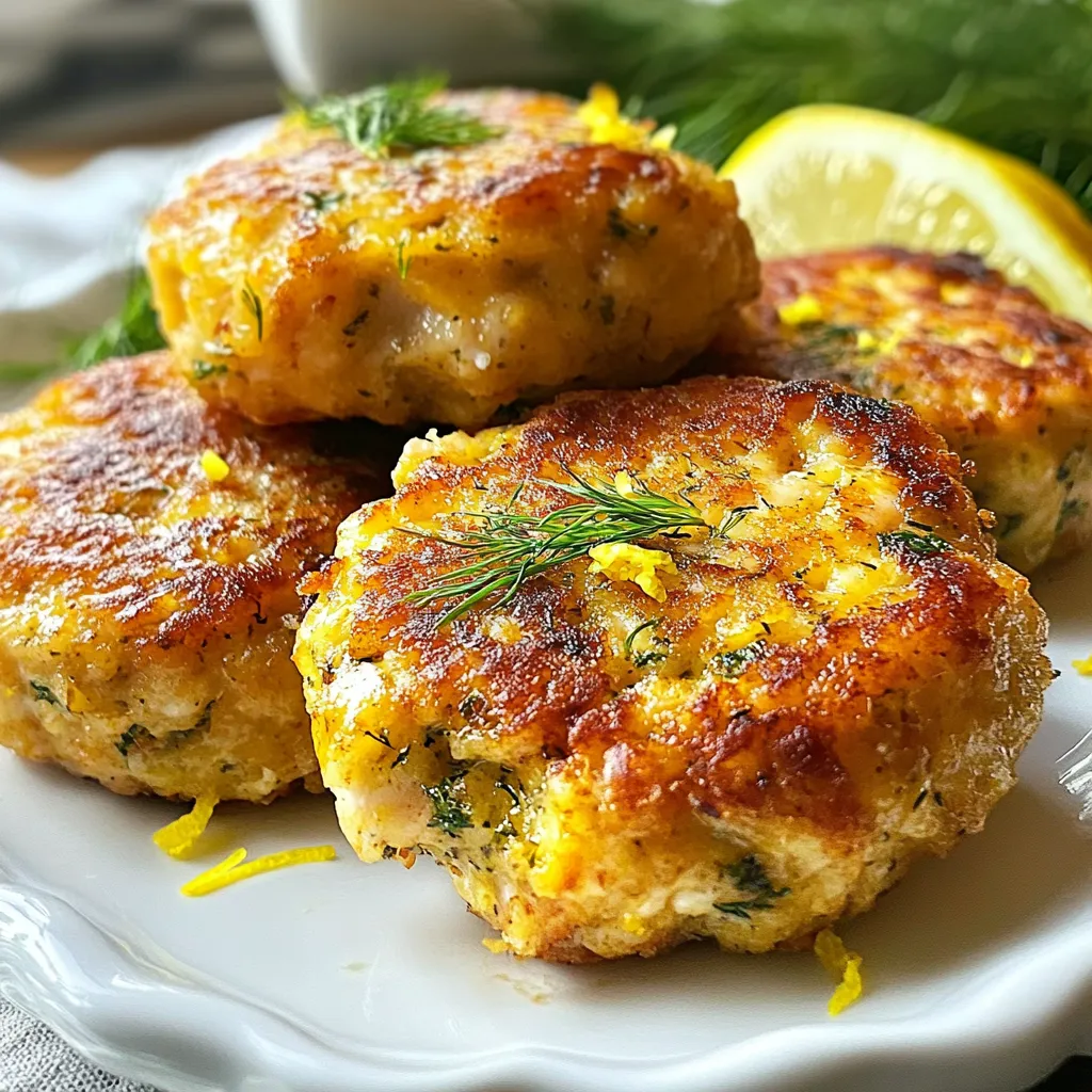 Delicious salmon cakes infused with lemon and dill, perfect for a light meal.
