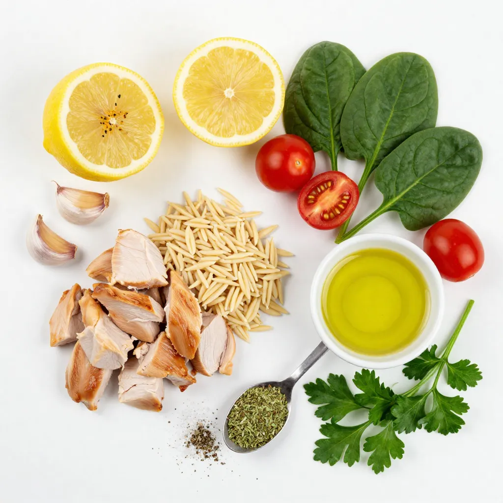 When selecting chicken, look for fresh, organic options. Choose orzo that is firm and dry. For garlic, pick bulbs that are firm with no soft spots. Look for lemons that are heavy for their size; they yield more juice. Use bright cherry tomatoes for a sweet burst in each bite. Fresh spinach should be vibrant and crisp.