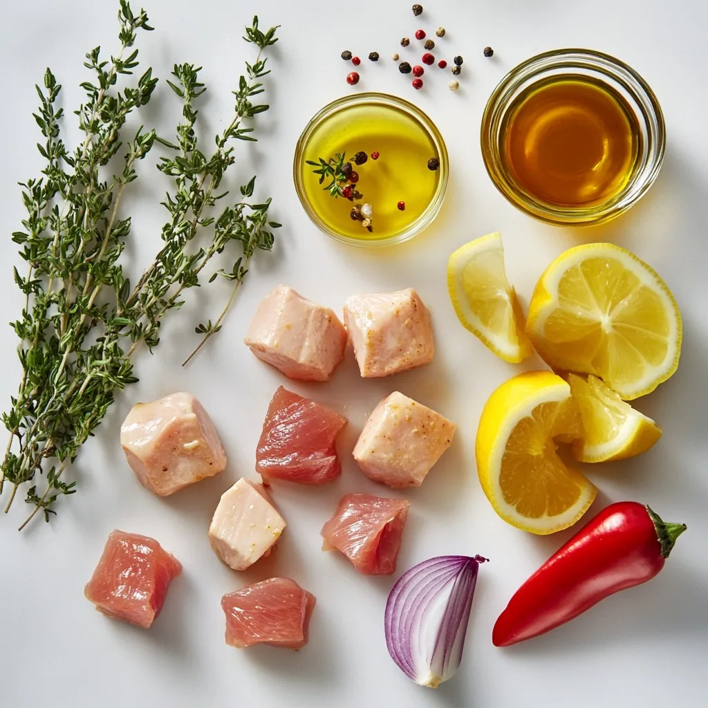 To get juicy chicken in your kabobs, use fresh chicken. Cut it into 1-inch cubes. Marinate it in the lemon-herb mix for at least 30 minutes. If you have time, let it sit longer, up to two hours. This helps the flavors soak in. The olive oil in the marinade helps keep the chicken moist while grilling.