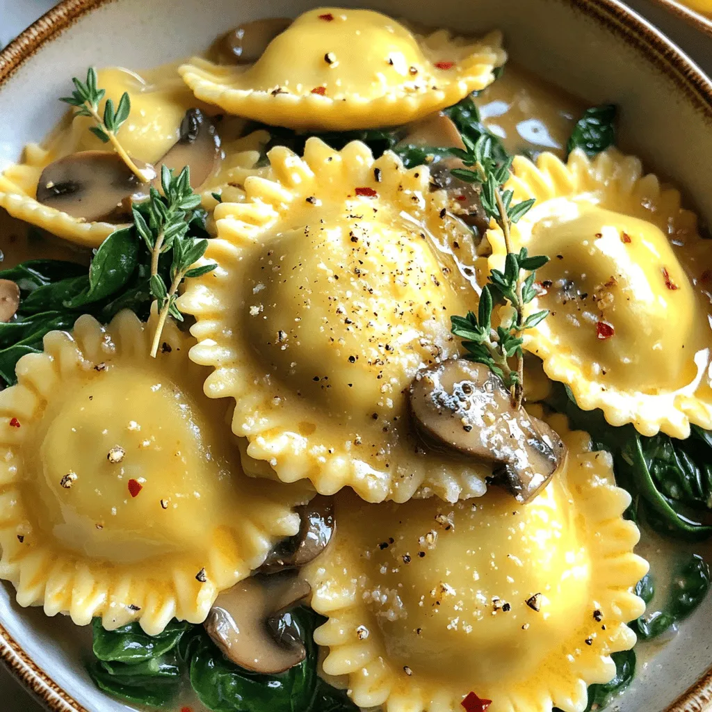 - 1 package (9 oz) fresh mushroom ravioli - 4 tablespoons unsalted butter - 4 cloves garlic, minced - 1 cup baby spinach - 1 teaspoon fresh thyme leaves - Salt and pepper to taste - Grated Parmesan cheese for serving - Crushed red pepper flakes for a kick You can swap fresh mushroom ravioli for cheese or spinach ravioli. If you don't have unsalted butter, salted butter works too. Use garlic powder instead of fresh garlic if needed. You can replace baby spinach with kale or arugula for a different taste. For a vegan option, use plant-based butter and skip the cheese or use a vegan alternative. To start, bring a large pot of salted water to a boil. This step is key for flavor. Once the water is boiling, add the fresh mushroom ravioli. Cook according to the package instructions, which usually takes about 3-5 minutes. You’ll know they are ready when they float to the surface and feel tender. Carefully drain the ravioli in a colander and set it aside. While the ravioli cooks, let’s make the garlic butter sauce. In a large skillet, melt 4 tablespoons of unsalted butter over medium heat. Once melted, add 4 cloves of minced garlic. Stir the garlic for about 1-2 minutes until it is fragrant and lightly golden. This part is important; burnt garlic can ruin the taste. Then, toss in 1 cup of baby spinach and 1 teaspoon of fresh thyme leaves. Cook for another 1-2 minutes until the spinach wilts down. Now it's time to combine everything. Add the drained ravioli directly into the skillet with the garlic butter sauce. Gently toss the ravioli to coat it evenly with the sauce. Season with salt and pepper to taste. If you like a bit of heat, sprinkle some crushed red pepper flakes on top. Serve the dish hot, and don’t forget to garnish with grated Parmesan cheese. For a lovely presentation, plate the ravioli in shallow bowls, drizzle with extra sauce, and finish with a sprig of thyme. Enjoy your tasty delight! To make the garlic butter sauce shine, use fresh garlic. Fresh garlic gives a stronger flavor. Mince it finely so it cooks evenly. Cook the garlic over medium heat. This helps it brown without burning. If it burns, the sauce will taste bitter. Add the butter to the skillet first. Let it melt slowly. As it melts, it will blend well with the garlic. You can add thyme for extra freshness. The herbs will brighten the dish and add depth. Presentation matters, even for quick meals. Serve the ravioli in shallow bowls. This makes it look fancy. Drizzle extra garlic butter sauce on top. It adds shine and flavor. Finish with a sprinkle of grated Parmesan cheese. A sprig of fresh thyme on top adds color. You can also add crushed red pepper flakes for a pop of color and spice. One common mistake is overcooking the ravioli. Follow the package instructions closely. Ravioli are done when they float. Be careful not to burn the garlic. Keep the heat at medium and stir often. If you see dark brown bits, the garlic is burnt. Lastly, taste your sauce before serving. Adjust salt and pepper as needed. This simple step can change the dish's flavor. Enjoy each bite of your garlic butter mushroom ravioli! {{image_2}} If you want more protein in your dish, try adding cooked chicken, shrimp, or sausage. Just sauté them in the garlic butter before adding the spinach. For a meat-free option, use chickpeas or lentils. They pack in protein and pair well with the flavors. This dish can easily fit a vegetarian or vegan diet. Use olive oil instead of butter for a vegan version. You can skip the cheese or use a plant-based alternative. Fresh herbs like basil or parsley can add great flavor without animal products. To make the dish pop, think about adding zest. A squeeze of lemon juice brightens flavors. You can also sprinkle in some Italian seasoning or fresh herbs like parsley or chives. For a spicy kick, try crushed red pepper flakes or a dash of hot sauce. These add warmth and depth to the sauce. After enjoying your Minute Garlic Butter Mushroom Ravioli, store any leftovers in an airtight container. Make sure to let the ravioli cool down first. This helps keep the dish fresh and tasty. Place it in the fridge. It will stay good for up to three days. If you want to save some for later, freezing is a great option. Place the cooled ravioli in a freezer-safe container or bag. Remove as much air as possible to prevent freezer burn. You can freeze it for up to two months. When you're ready to eat, thaw it overnight in the fridge. Then, reheat it in a skillet over low heat. You can add a splash of water or extra butter to keep it moist. Understanding the shelf life of your ingredients helps in planning meals. Fresh mushroom ravioli usually lasts about one week in the fridge. Store bought butter can last up to four months in the fridge. Garlic is good for about a month when kept in a cool, dark place. Baby spinach should be used within a week for the best taste and nutrition. Check these dates to avoid waste. Yes, you can use frozen ravioli. Just cook them in boiling water for a bit longer. Follow the package instructions. Frozen ravioli can taste great too! You can add many things to this dish. Try cooked chicken or shrimp for protein. Sautéed bell peppers or sun-dried tomatoes add nice flavor. You might enjoy adding fresh herbs like basil or parsley for more taste. To spice up the dish, add crushed red pepper flakes. You can mix them in with the garlic butter sauce. Another option is to add a dash of hot sauce before serving. For a bold kick, sauté chopped jalapeños with the garlic. In this blog post, we explored making delicious garlic butter ravioli. We covered key ingredients, step-by-step cooking methods, and helpful tips to get the best flavor. You learned about ingredient substitutions and ways to make the dish unique. Remember to store leftovers properly and avoid common mistakes. With these insights, you can create a delightful meal that impresses. Enjoy experimenting with flavors and making this dish your own!