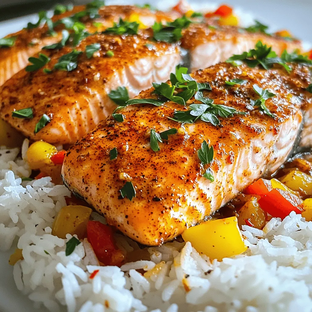 Gathering the right ingredients sets the stage for your One-Pan Cajun Salmon & Rice. You need fresh salmon fillets, jasmine rice, and vegetable broth or water for cooking. The Cajun seasoning adds a kick. You can mix in spices like paprika and cayenne for heat.