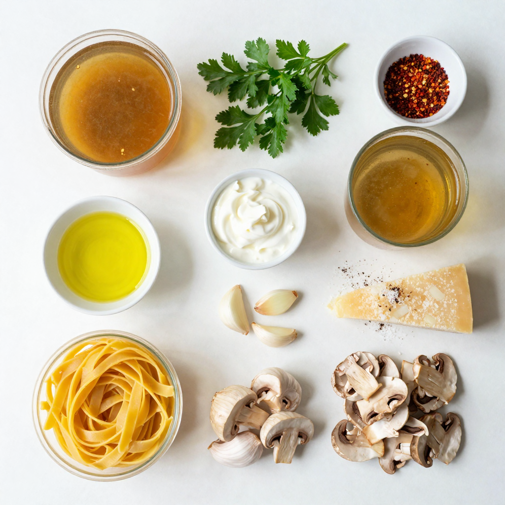 For this dish, I love starting with fettuccine pasta. It holds the creamy sauce well. Olive oil brings a rich flavor and helps cook the onion and mushrooms. Diced onion adds sweetness, while minced garlic gives a nice kick. I often choose cremini mushrooms for a deeper taste, but button mushrooms work great too.