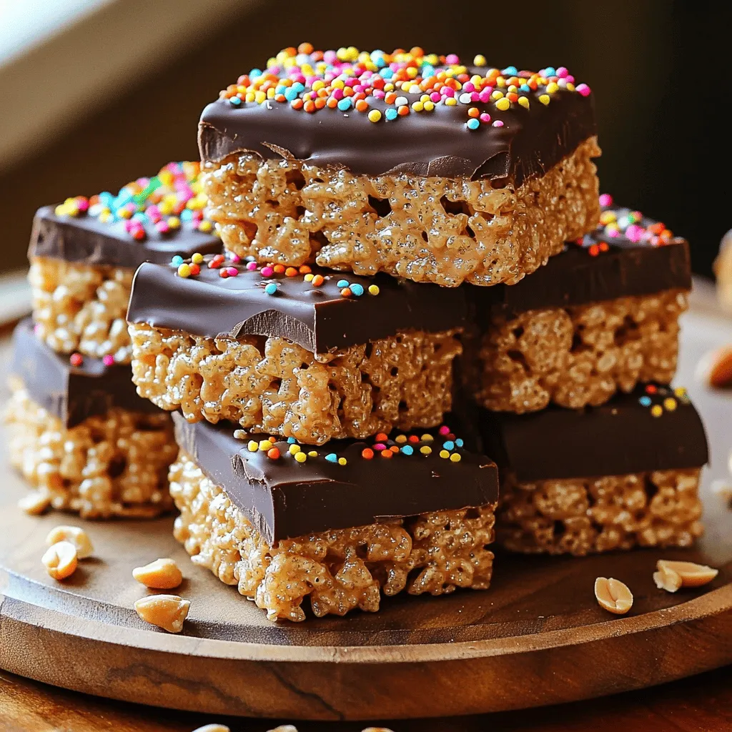 Peanut Butter Chocolate Rice Krispie Bars are a simple yet fun treat. You will love how easy they are to make. The blend of peanut butter and chocolate creates a tasty snack. Let’s dive into what you need to whip up this delight! - 3 cups Rice Krispies cereal - 1 cup creamy peanut butter - 1 cup honey or maple syrup - 1 cup semi-sweet chocolate chips - 1 teaspoon vanilla extract - A pinch of salt You can add your favorite toppings for extra flavor. Some great options include: - Crushed peanuts - Mini chocolate chips - Sprinkles These toppings make the bars more fun and colorful. Mix and match to make your own special treat! Start by gathering all your ingredients. You need Rice Krispies, peanut butter, honey or maple syrup, chocolate chips, vanilla extract, and a pinch of salt. Measure out 3 cups of Rice Krispies and put them in a large bowl. This will be the crunchy base of your bars. In a medium saucepan, combine 1 cup of peanut butter and 1 cup of honey or maple syrup. Heat over medium heat. Stir the mixture for about 2-3 minutes until it is smooth and well blended. Remove it from heat. Add in 1 teaspoon of vanilla extract and a pinch of salt. Mix well. Pour this warm mixture over the Rice Krispies. Stir gently until all the cereal is coated evenly. Grease a 9x13 inch baking dish with cooking spray or line it with parchment paper. Transfer the Rice Krispies mix into the dish. Press it down firmly with a spatula or your hands. In a microwave-safe bowl, melt 1 cup of chocolate chips in 30-second bursts. Stir after each interval until smooth. Pour the melted chocolate over the cereal mixture and spread it evenly. For extra fun, sprinkle crushed peanuts or mini chocolate chips on top. Let the bars cool at room temperature for about 30 minutes. Then, refrigerate them for an hour to set. Once firm, cut into squares or rectangles and serve. Enjoy your tasty treat! When making Peanut Butter Chocolate Rice Krispie Bars, a few mistakes can spoil your fun. First, don’t rush the mixing. If you don’t coat the Rice Krispies well, the bars may fall apart. Second, avoid overcooking the peanut butter and honey mixture. This can make it too thick. Lastly, don’t skip the cooling step. Letting them cool properly helps them set well. For the best texture, use creamy peanut butter. It blends well and gives a smooth feel. The mixture should not be too dry or too wet. When mixing, make sure every Rice Krispie is coated. Press the mixture firmly into the dish. This helps the bars hold their shape when cut. A little pinch of salt enhances the flavors and balances the sweetness. A well-presented dish makes any treat more tempting. Stack the bars in a tower on a decorative plate. This adds height and interest. You can also wrap each bar in parchment paper and tie it with twine. It makes a lovely gift. Don’t forget to sprinkle some crushed peanuts or mini chocolate chips on top while the chocolate is still warm. This adds a fun touch and a pop of color. {{image_2}} You can easily make these bars gluten-free. Just use gluten-free Rice Krispies. They taste just as good and hold together well. You can find gluten-free options at most grocery stores. This way, everyone can enjoy this treat. Just follow the same steps in the recipe. To make a vegan version, swap honey for maple syrup. Use dairy-free chocolate chips instead of regular ones. These changes keep the bars plant-based while still tasting great. You won’t miss the honey at all. The maple syrup adds a nice flavor and sweetness. You can add other flavors to mix things up. Try adding a pinch of cinnamon or nutmeg for warmth. You can also mix in some chopped nuts or dried fruit. Dark chocolate chips can replace semi-sweet chips for a richer taste. Just remember to keep the balance so all flavors shine through. To keep your Peanut Butter Chocolate Rice Krispie Bars fresh, store them in an airtight container. This prevents them from drying out and losing their yummy taste. You can also wrap the bars in plastic wrap before placing them in the container. Keep the bars at room temperature if you plan to eat them within a few days. These tasty bars last about one week at room temperature. If you notice any changes in texture or smell, it’s best to toss them. For longer storage, keep them in the fridge. This can extend their life to about two weeks. Just remember to let them sit at room temperature for a few minutes before serving. If you want to save some bars for later, freezing is a great option. Cut the bars into squares first. Then, wrap each square in plastic wrap and place them in a freezer bag. Be sure to remove as much air as possible. The bars can stay in the freezer for up to three months. When you're ready to eat, let them thaw in the fridge overnight or at room temperature for a few hours. Enjoy your sweet treat anytime! You can replace honey with maple syrup. Maple syrup adds sweetness and works well. Use the same amount as the honey. Just follow the recipe steps as usual. Your bars will still be tasty and sweet. Yes, you can! Feel free to try cornflakes or puffed rice. Both options will give a nice crunch. Just ensure they are similar in size to Rice Krispies. This keeps the texture great and your bars firm. Each bar has about 150 calories. It includes 5 grams of protein and 7 grams of fat. The bars also contain sugars from the peanut butter and honey. They are a treat, so enjoy them in moderation! This blog post covered everything you need for Peanut Butter Chocolate Rice Krispie Bars. You learned the full recipe, step-by-step instructions, and tips for success. We explored fun variations and how to store your tasty treats. With these ideas, you can enjoy this snack in many ways. Try making them your own with new flavors or toppings. Enjoy the joy of creating these delicious bars!