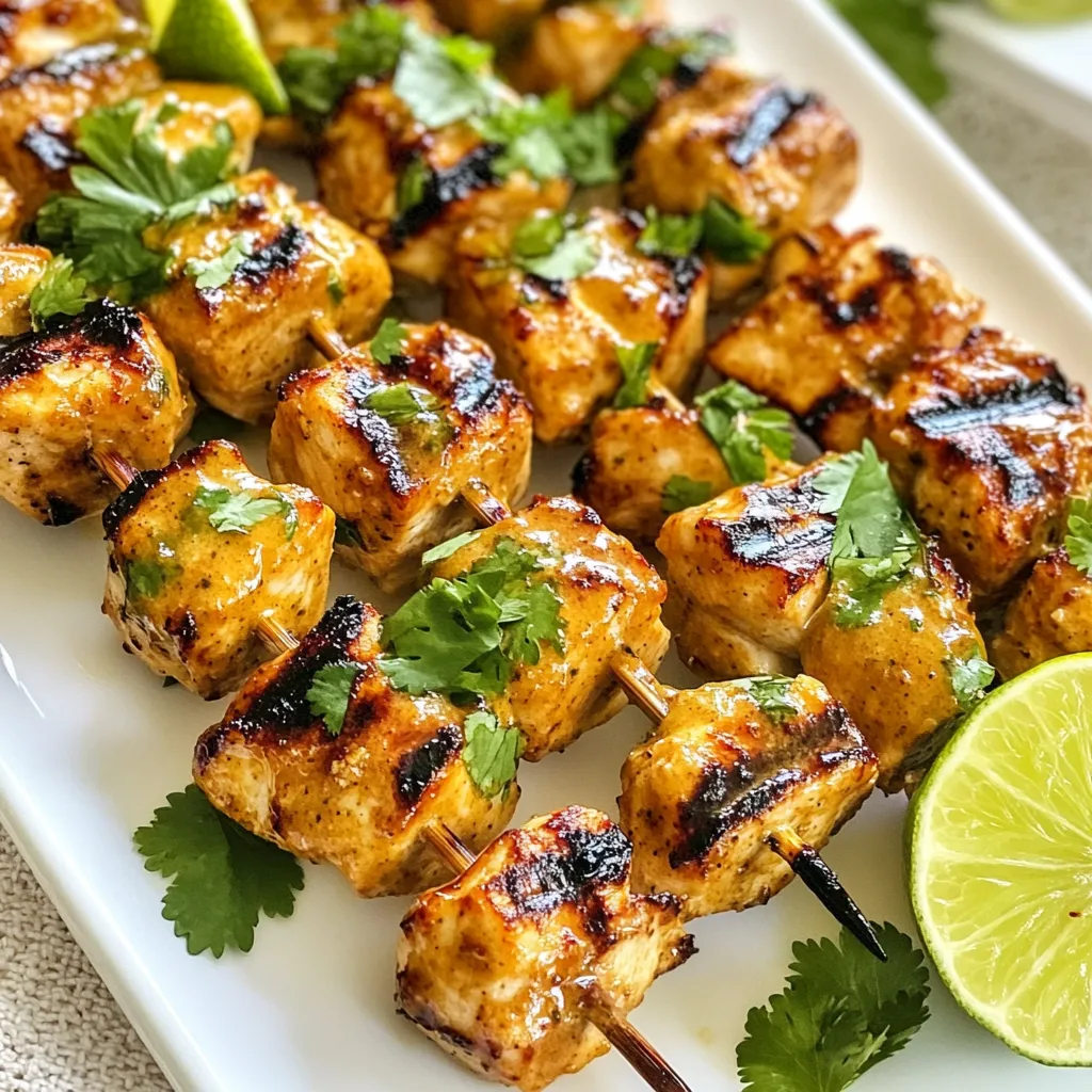 Garnish your skewers with fresh lime wedges and bright cilantro leaves. This adds color and flavor. You can also drizzle leftover marinade on top for extra taste.