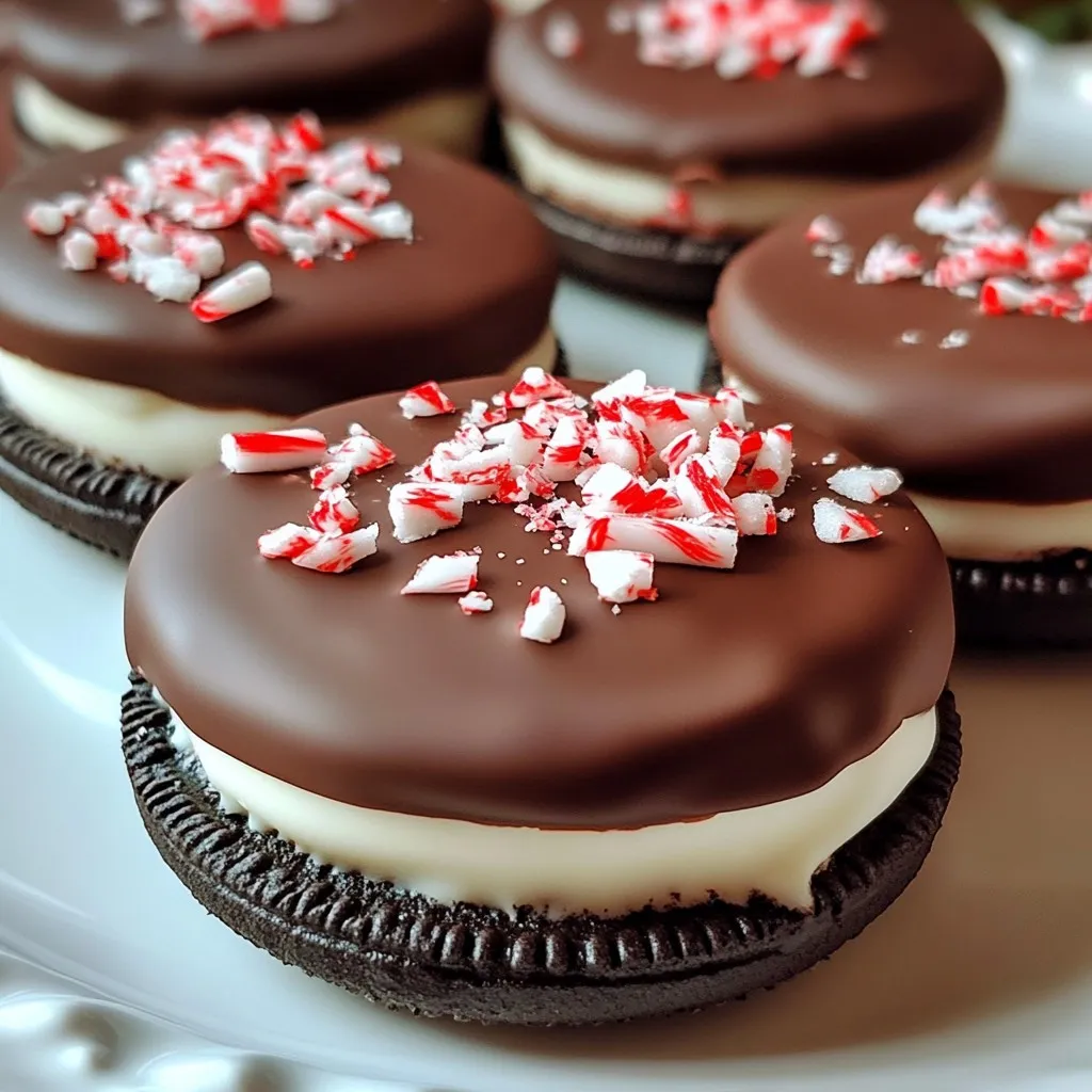 - Coat with Peppermint: While the chocolate is still wet, sprinkle crushed peppermint candies over the top of the dipped Oreos. For added decoration, you can also sprinkle colorful sprinkles at this stage.