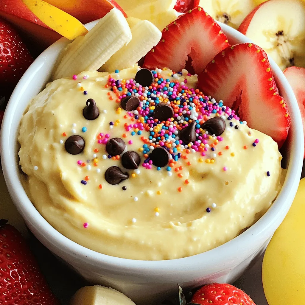 Each ingredient plays a key role. Greek yogurt gives the dip a creamy base. Vanilla protein powder adds protein and flavor. Almond flour thickens the dip while keeping it light. Sugar-free sprinkles bring the birthday cake vibe. Honey or maple syrup sweetens the dip just right. A touch of vanilla extract adds depth. Salt balances the flavors perfectly. Mini chocolate chips, if you choose, offer a delightful surprise. Finally, fresh fruit makes the best dippers.