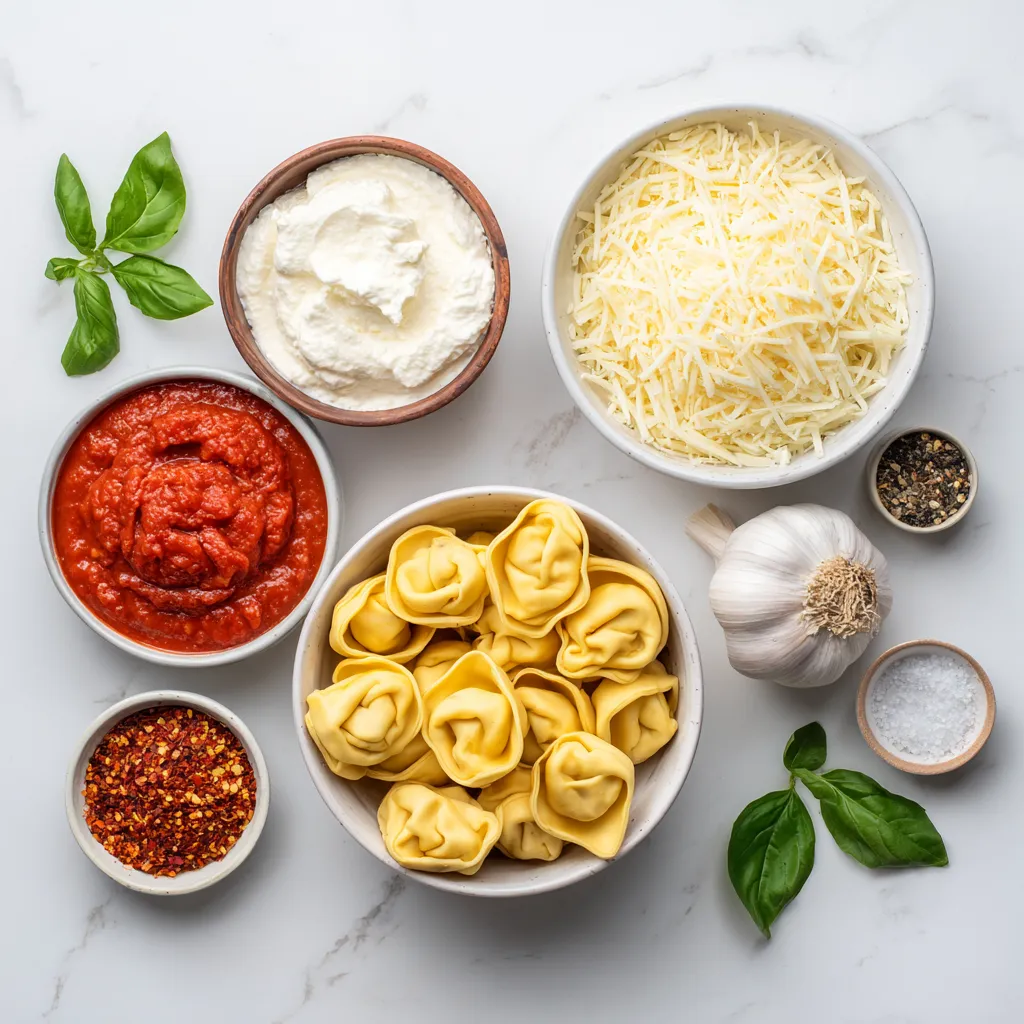 To make a delicious Roasted Red Pepper Tortellini Bake, you need fresh ingredients. Start with cheese tortellini, which gives a soft and cheesy base. The roasted red peppers add a sweet and smoky flavor. Ricotta cheese makes the dish creamy, while mozzarella and Parmesan bring in the cheesy goodness.