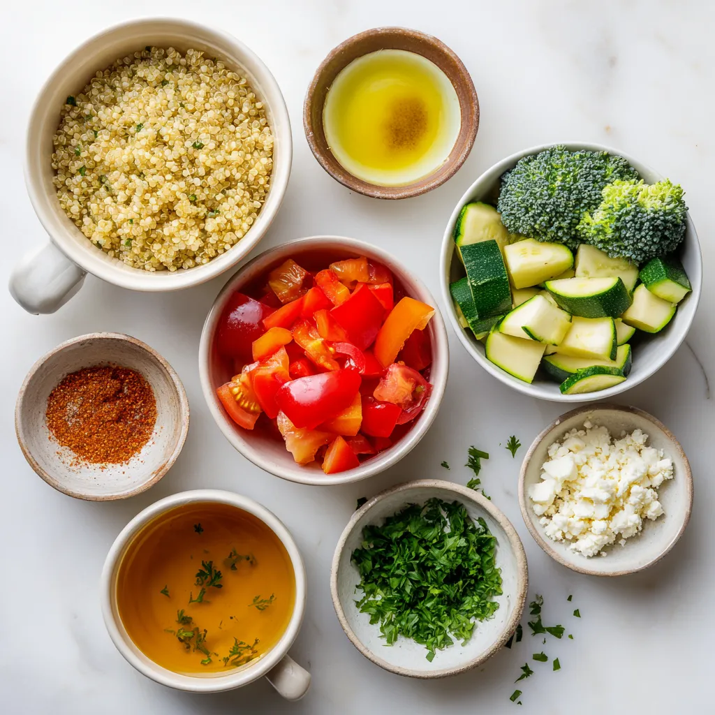 Each ingredient adds flavor and nutrition to the dish. Quinoa is a great base. It is packed with protein and fiber. The fresh veggies bring color and crunch.