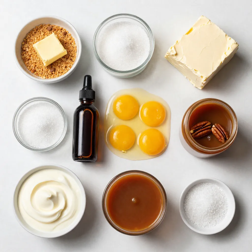 - Prepare the topping: Just before serving, sprinkle the chopped pecans over the top of the chilled cheesecake and drizzle with additional salted caramel sauce.