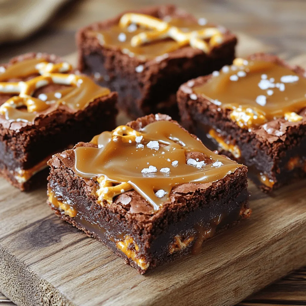 When making these salted caramel pretzel brownies, you need simple yet tasty ingredients. First, you start with butter, sugar, and eggs. These are the key items for a good base. I love using both granulated and brown sugars for that rich flavor. Vanilla extract adds a nice touch too.