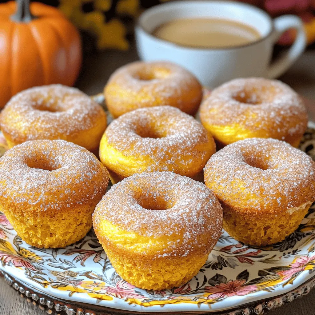 The ingredients for pumpkin spice donut muffins are simple and easy to find. Here’s what you need: - 1 cup canned pumpkin puree - 1/2 cup granulated sugar - 1/2 cup brown sugar, packed - 1/3 cup vegetable oil - 2 large eggs - 1 teaspoon vanilla extract - 1 1/2 cups all-purpose flour - 1 teaspoon baking powder - 1/2 teaspoon baking soda - 1 teaspoon ground cinnamon - 1/2 teaspoon ground nutmeg - 1/2 teaspoon ground ginger - 1/2 teaspoon salt - 1/4 teaspoon ground cloves - 1/3 cup milk - 1/4 cup granulated sugar (for coating) - 1 teaspoon ground cinnamon (for coating) Each ingredient plays a key role in creating the perfect flavor and texture. The pumpkin puree gives moisture and rich taste. Sugar adds sweetness, while brown sugar adds depth. The oil keeps the muffins tender. The eggs bind everything together for a fluffy texture. The spices make these muffins special. Cinnamon, nutmeg, ginger, and cloves create that warm, comforting flavor. You can even tweak the spices to match your taste. Enjoy the process of gathering these ingredients, as they bring you closer to a cozy baking experience. 1. Preheat your oven to 350°F (175°C). This ensures even baking. 2. Prepare a standard muffin tin by greasing it or lining it with paper liners. This helps with easy removal. 3. In a large bowl, mix the wet ingredients: canned pumpkin puree, granulated sugar, brown sugar, and vegetable oil. Stir until smooth. 4. Add two large eggs, mixing well after each addition. Finally, stir in one teaspoon of vanilla extract. 5. In a separate bowl, combine the dry ingredients: all-purpose flour, baking powder, baking soda, ground cinnamon, nutmeg, ginger, salt, and cloves. Whisk until blended. 1. Gradually add the dry mix to the wet mix. Alternate with one-third cup of milk. 2. Start and end with the dry mix. Mix until just combined. Be careful not to overmix, or the muffins may turn out dense. 1. Spoon the batter into the prepared muffin tin. Fill each cup about two-thirds full. 2. Bake in the preheated oven for 18 to 20 minutes. Check for doneness with a toothpick. It should come out clean. 3. While the muffins bake, mix a quarter cup of granulated sugar with one teaspoon of ground cinnamon in a small bowl for coating. 4. Let the muffins cool in the pan for about five minutes. Then, transfer them to a wire rack. 5. While still warm, roll each muffin in the cinnamon sugar mixture. This gives them a sweet, crunchy finish. - Ensure proper oven temperature. Always preheat your oven to 350°F (175°C). This makes sure your muffins bake evenly. - Avoid overmixing for a light texture. When you combine the wet and dry ingredients, mix just until combined. This keeps your muffins fluffy and soft. - Serve on decorative plates. A nice plate makes your muffins look even more tempting. - Dust with extra cinnamon sugar for visual appeal. This adds color and a sweet touch. It makes each muffin shine. - Substitute ingredients for dietary preferences. Use almond milk instead of regular milk or swap out the oil for applesauce. This works well for vegan options. - Add-ins such as nuts or chocolate chips. Toss in some chopped walnuts or chocolate chips for added flavor. You can also try mini marshmallows for a fun twist! {{image_2}} You can take your pumpkin spice donut muffins to new heights with fun flavors. - Maple Pumpkin Spice Donut Muffins: Simply replace half of the granulated sugar with maple syrup. This adds a rich, sweet flavor. The maple pairs beautifully with pumpkin. - Chocolate Pumpkin Spice Donut Muffins: Fold in a cup of chocolate chips for a sweet twist. The chocolate deepens the flavor and makes them extra special. You can make these muffins healthier without losing taste. - Whole wheat flour substitution: Swap all-purpose flour for whole wheat flour. This adds fiber and nutrients. The muffins will still taste great, just a bit denser. - Reducing sugar or using alternatives: Cut down on sugar by using less granulated sugar. You can also try honey or coconut sugar. These options offer a unique flavor while lowering carbs. Make your muffins suit any occasion with seasonal spices. - Holiday-themed spice blends: Add a pinch of allspice or cardamom for a festive touch. These spices add warmth and depth, perfect for holiday gatherings. - Adapting for different occasions: For fall, use nutmeg and cloves. In spring, add lemon zest or a hint of ginger. This keeps your baking exciting and fresh. To keep your pumpkin spice donut muffins fresh, store them in an airtight container. This helps prevent them from drying out. Place a paper towel in the container to absorb excess moisture. This way, you’ll enjoy muffins that stay soft and tasty. You can store them at room temperature for up to three days. If you want to save muffins for later, freezing is a great option. First, let the muffins cool completely. Wrap each muffin in plastic wrap or aluminum foil. Then, place them in a freezer bag. Remove as much air as possible to prevent freezer burn. Muffins can stay frozen for up to three months. When you're ready to eat, thaw them in the fridge overnight. For the best taste, reheat your muffins before enjoying them. You can use a microwave or an oven. If using the microwave, heat on low power for 10-15 seconds. For the oven, preheat it to 350°F (175°C) and warm the muffins for about 5 minutes. This keeps them soft and brings back their flavor. Enjoy your warm, delightful muffins! How do I prevent muffins from sticking to the pan? To stop muffins from sticking, grease the pan well or use paper liners. You can use cooking spray or butter. Make sure to cover all areas inside the cups. Can I use fresh pumpkin instead of canned? Yes, you can use fresh pumpkin. Just cook and puree the pumpkin until smooth. Make sure to remove excess water for the best results. What can I substitute for eggs in the recipe? You can use unsweetened applesauce or mashed bananas to replace eggs. Use 1/4 cup of either for one egg. This keeps muffins 