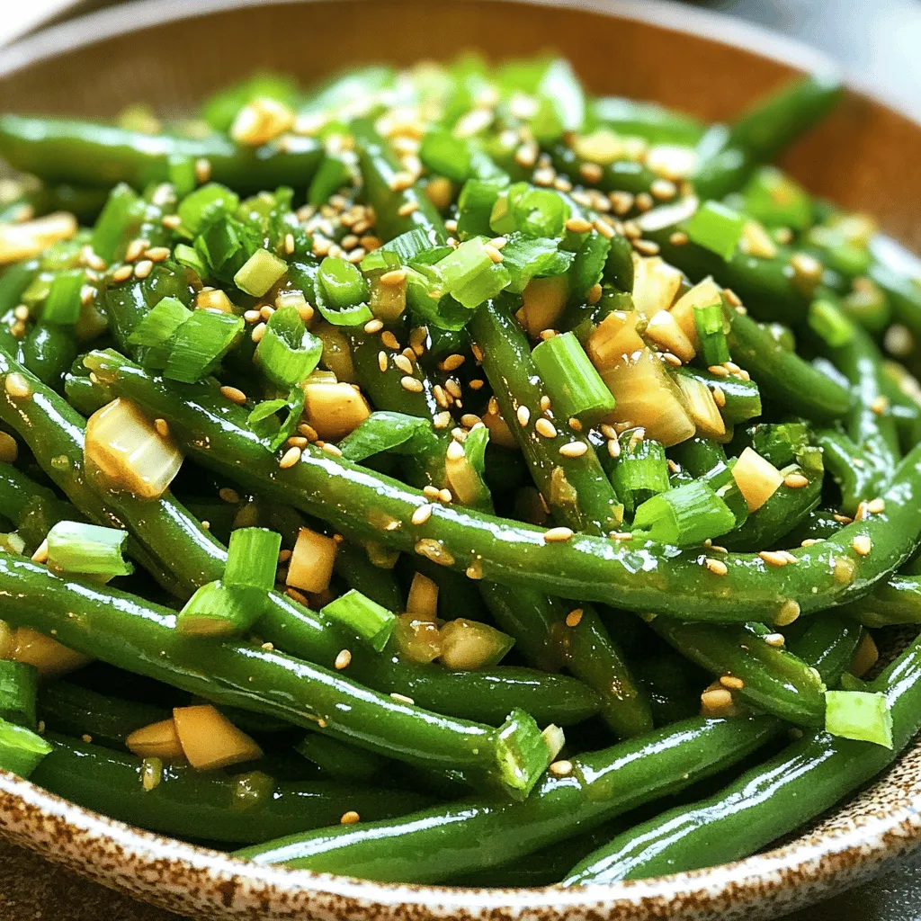 Choosing fresh green beans is key. Look for beans that are bright green and firm. They should snap easily when bent. Sesame oil adds a rich flavor, while garlic and ginger bring warmth and depth.