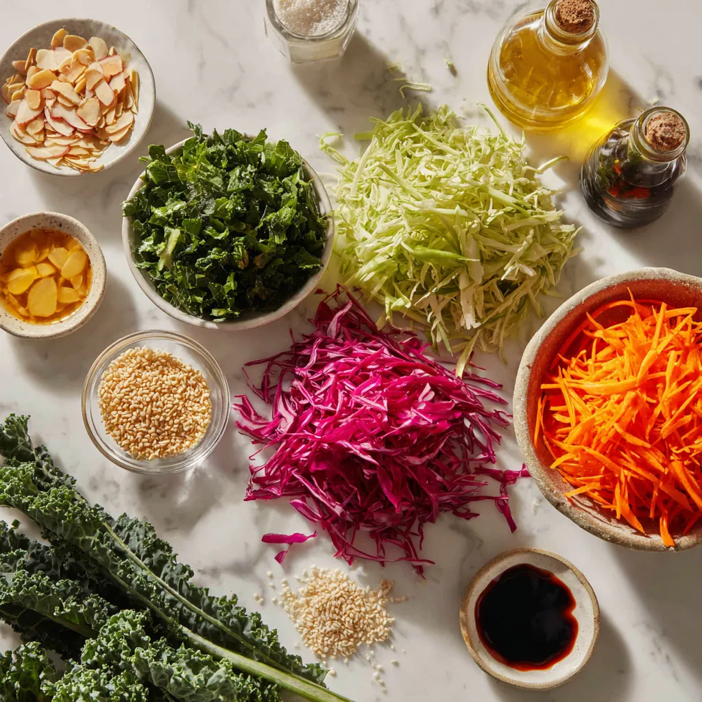 You can switch up the greens in this salad. Instead of kale, try spinach or arugula. Both greens add a fresh taste. You can also use collard greens for a heartier bite. For veggies, swap green cabbage with purple cabbage for color. Zucchini ribbons also work well if you want something different.