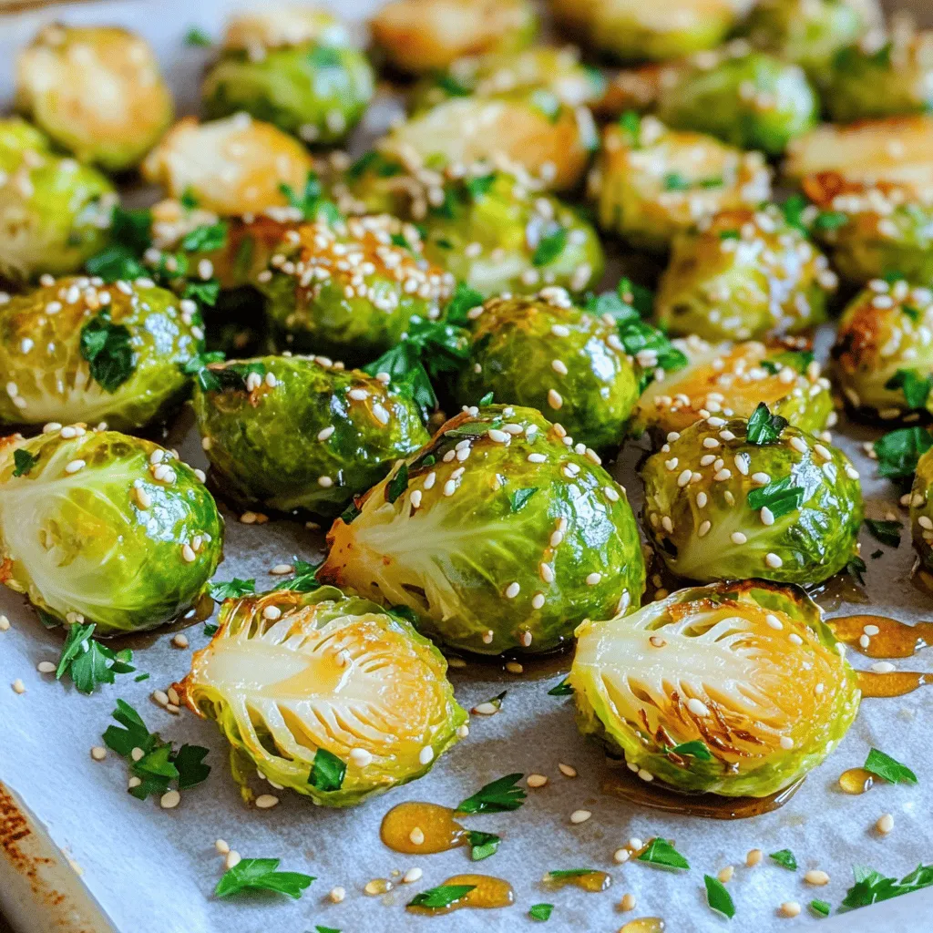 To make sheet pan honey garlic Brussels sprouts, gather these simple ingredients: - 1 pound Brussels sprouts, trimmed and halved - 2 tablespoons olive oil - 3 tablespoons honey - 4 cloves garlic, minced - 1 tablespoon soy sauce (or tamari for gluten-free) - 1 teaspoon apple cider vinegar - Salt and pepper to taste - ¼ teaspoon red pepper flakes (optional) - Sesame seeds for garnish - Fresh parsley, chopped for garnish These ingredients work together to create a sweet and savory dish. The Brussels sprouts are the star, offering a nice crunch when roasted. The honey adds sweetness, while the garlic gives it a kick. Olive oil helps everything roast evenly. Soy sauce brings depth, and apple cider vinegar adds a tangy touch. Feel free to adjust the red pepper flakes based on your heat preference. Adding sesame seeds and parsley not only makes the dish pretty but also adds fresh flavor. This combination will make your meal pop with taste. First, set your oven to 400°F (200°C). This hot oven helps the Brussels sprouts cook quickly. Line a sheet pan with parchment paper. It makes cleanup easy and keeps the sprouts from sticking. In a big bowl, mix together the olive oil, honey, minced garlic, soy sauce, and apple cider vinegar. Add salt and pepper for taste. If you like some heat, toss in red pepper flakes. Whisk all the ingredients until they blend well. This sweet and savory mix makes the sprouts shine. Now, take your halved Brussels sprouts and add them to the bowl. Toss them gently in the honey garlic mixture. Make sure each sprout gets coated nicely. This step ensures they soak up all that yummy flavor. Spread the coated Brussels sprouts in a single layer on the lined sheet pan. Avoid crowding them too much. Place the pan in the hot oven. Roast for 20-25 minutes. Stir the sprouts halfway through cooking. They should be tender and caramelized when done. Once you take them out, sprinkle sesame seeds and chopped fresh parsley on top. This adds a nice crunch and color. Serve them warm. Enjoy this tasty dish as a side or a light meal. When picking Brussels sprouts, look for bright green color. They should feel firm and tight. Avoid any with yellow leaves or soft spots. Fresh sprouts taste better and roast more evenly. You can change the honey and garlic amounts. If you like it sweeter, add more honey. Want more kick? Increase the red pepper flakes. You can also try different vinegars for new tastes. Soy sauce can be swapped with tamari for gluten-free options. To get that nice caramel color, spread the sprouts in a single layer. Crowding them leads to steaming, not roasting. Stir them halfway through cooking for even browning. Keep an eye on them to avoid burning. Perfectly caramelized sprouts have a rich flavor and a crispy texture. {{image_2}} You can boost your sheet pan dish by adding more veggies. Carrots, sweet potatoes, or bell peppers work well. Just chop them into similar sizes as the Brussels sprouts. Toss them in the same honey garlic mix. Roast them together for tasty, colorful bites. This adds more flavor and makes your meal more fun. If you want a vegan version, swap honey for maple syrup. This keeps the sweetness while making it plant-based. You can also use coconut aminos instead of soy sauce. This gives a nice flavor without gluten. These small swaps make the dish friendly for all diets while keeping it delicious. Want to add a kick? Try different spices! You can use cumin for a warm flavor. Or add smoked paprika for a hint of smokiness. If you love heat, increase the red pepper flakes. You can also try garlic powder or onion powder for more depth. Mixing in your favorite spices will make this dish your own. To store your honey garlic Brussels sprouts, let them cool first. Place them in an airtight container. Keep them in the fridge for up to three days. If you want to keep them longer, freezing is a great option. When you're ready to enjoy leftovers, reheat them in the oven. Preheat the oven to 350°F (175°C). Spread the Brussels sprouts on a baking sheet. Heat for about 10-15 minutes or until warm. You can also use a microwave for quick reheating, though they may lose some crunch. To freeze, spread the cooked Brussels sprouts on a baking sheet. Freeze them for about an hour, then transfer to a freezer bag. They can last up to three months in the freezer. When you’re ready to eat, thaw in the fridge overnight before reheating. Enjoy these tasty sprouts any time! Yes, you can use frozen Brussels sprouts. However, they may not roast as well. Frozen sprouts often have more water. This can make them soggier instead of crispy. If you do use frozen sprouts, thaw them first. Pat them dry with a towel to remove extra moisture. To make this dish gluten-free, simply use tamari instead of soy sauce. Tamari is a gluten-free soy sauce alternative. It gives the same great flavor without the gluten. Always check labels to be sure. Honey garlic Brussels sprouts pair well with many dishes. You can serve them with grilled chicken or fish. They also go great with rice or quinoa. Add a fresh salad for a complete meal. Brussels sprouts are done when they are tender and golden brown. You can poke them with a fork to test. If they are soft inside and have a nice caramel color, they are ready. Cooking time is usually 20-25 minutes at 400°F. This blog post explored a simple way to make honey garlic Brussels sprouts. We covered ingredients, steps to prepare, and tips for perfect results. You learned how to adjust flavors and try new vegetables. Storing leftovers and reheating them was also discussed. These sprouts can add flavor to your meals, making veggies fun to eat. Enjoy exploring this dish and making it your own!