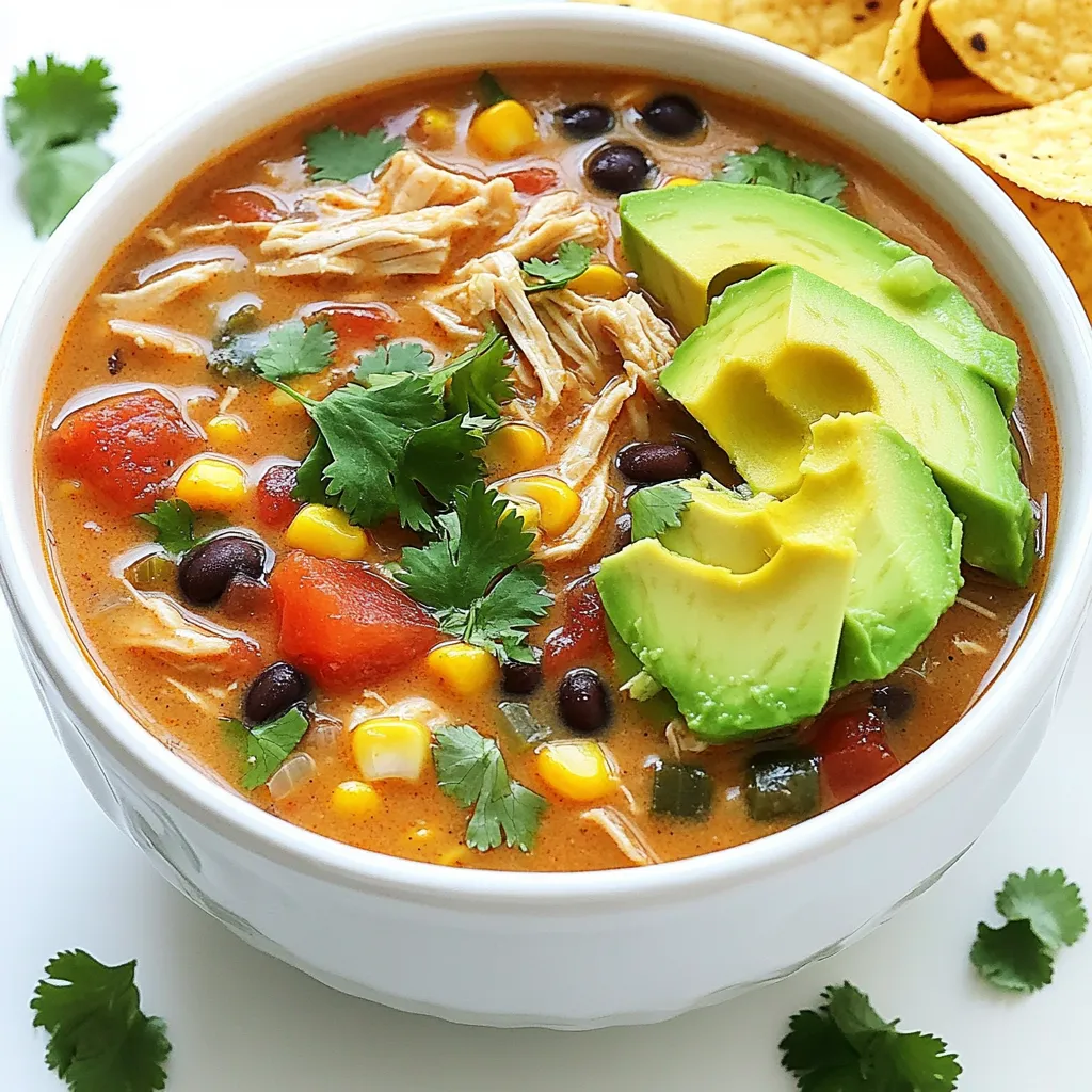 Garnishing is key to a great soup. Fresh cilantro adds a pop of color. Diced avocado gives creaminess. Don’t forget the tortilla chips! They add a nice crunch and are perfect for dipping.